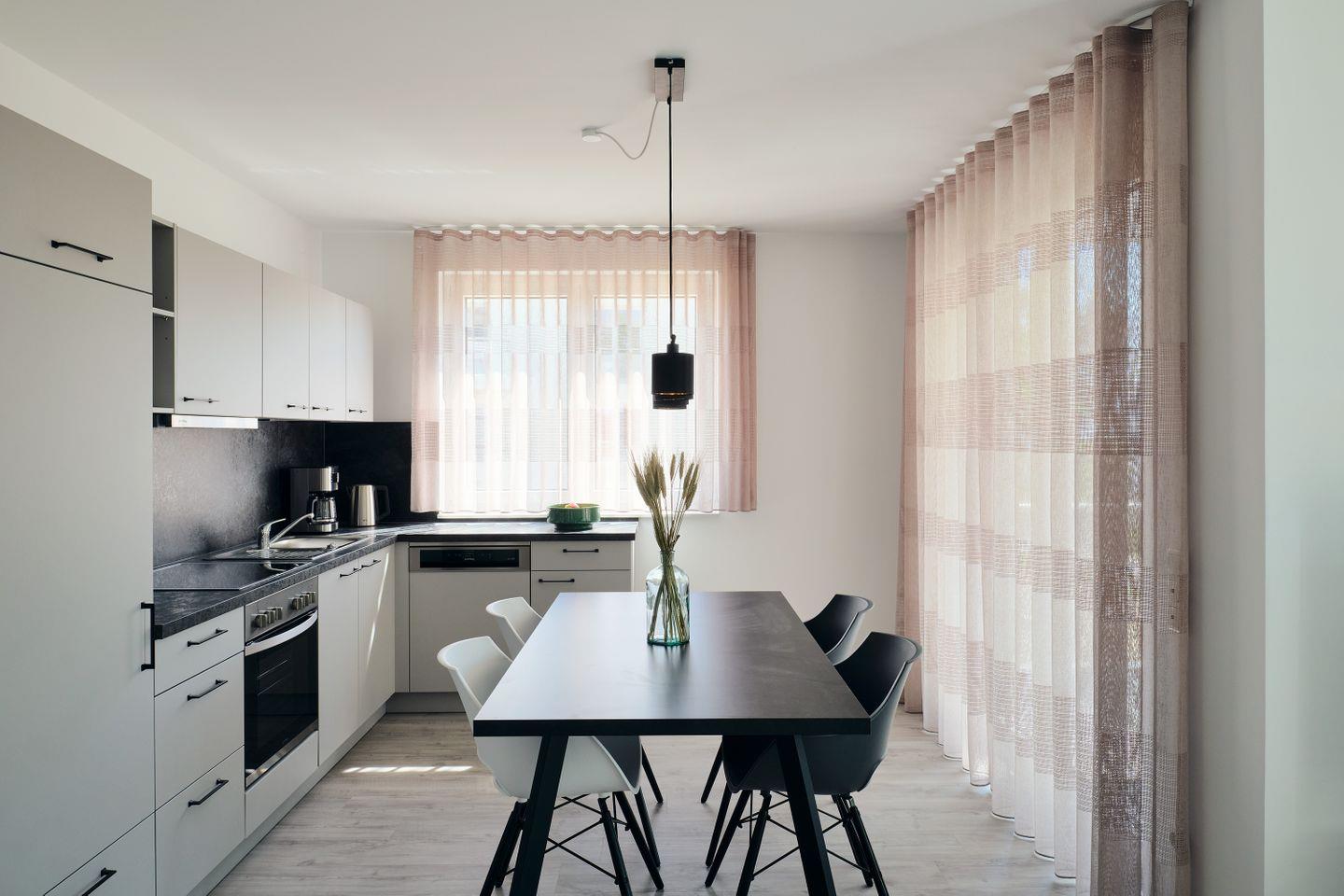 - Voll ausgestattete offene Küche mit hochwertigen Geräten – ideal, um Ihre Lieblingsgerichte zuzubereiten