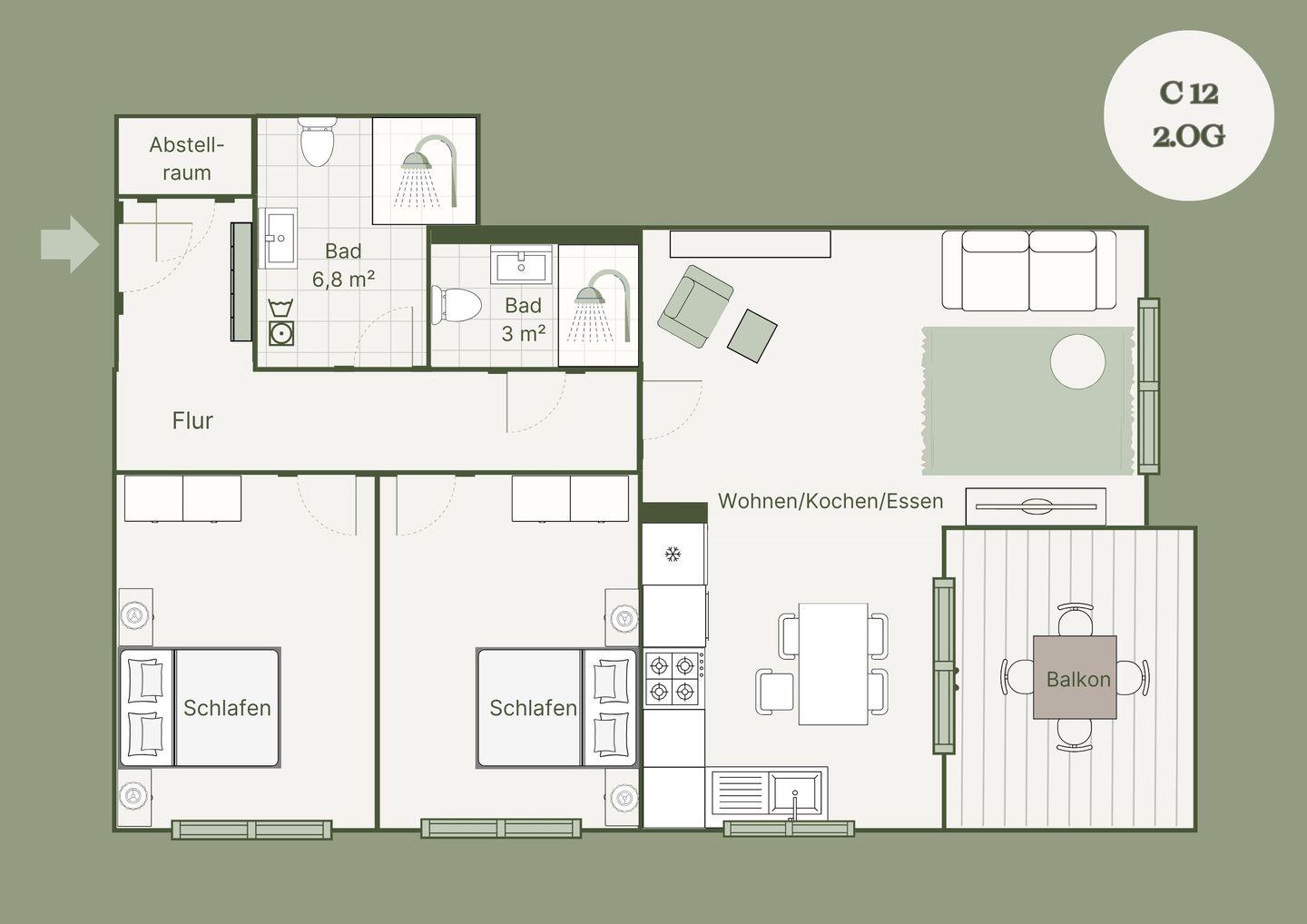 Unser Apartment ist der perfekte Rückzugsort für einen entspannten Aufenthalt. Mit großzügigen 87 Quadratmetern bietet es Platz für bis zu sechs Personen und überzeugt durch modernes Design sowie durchdachte Ausstattung: