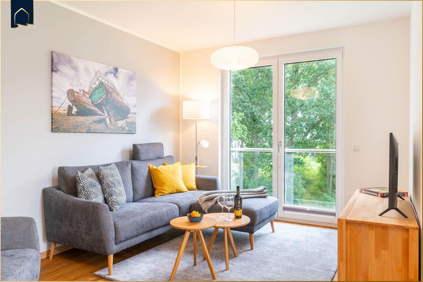 In ruhiger Lage von Zirchow/Garz auf der beliebten Insel Usedom empfängt Sie die Ferienwohnung „HaffSeits“ mit einem stilvollen Ambiente und ländlichem Charme. Auf 94 m² Wohnfläche im 2. Stock bietet die Wohnung Platz für bis zu 4 Personen und ist ideal für Familien, Paare oder Ruhesuchende. Von hier genießen Sie den Blick ins Grüne und starten zu Ausflügen in die Natur, an die nahegelegenen Strände oder zu Sehenswürdigkeiten der Umgebung. Die Wohnung ist bequem per Aufzug erreichbar und verfügt über einen eigenen Balkon, von dem Sie den Landschaftsblick in vollen Zügen genießen können.
