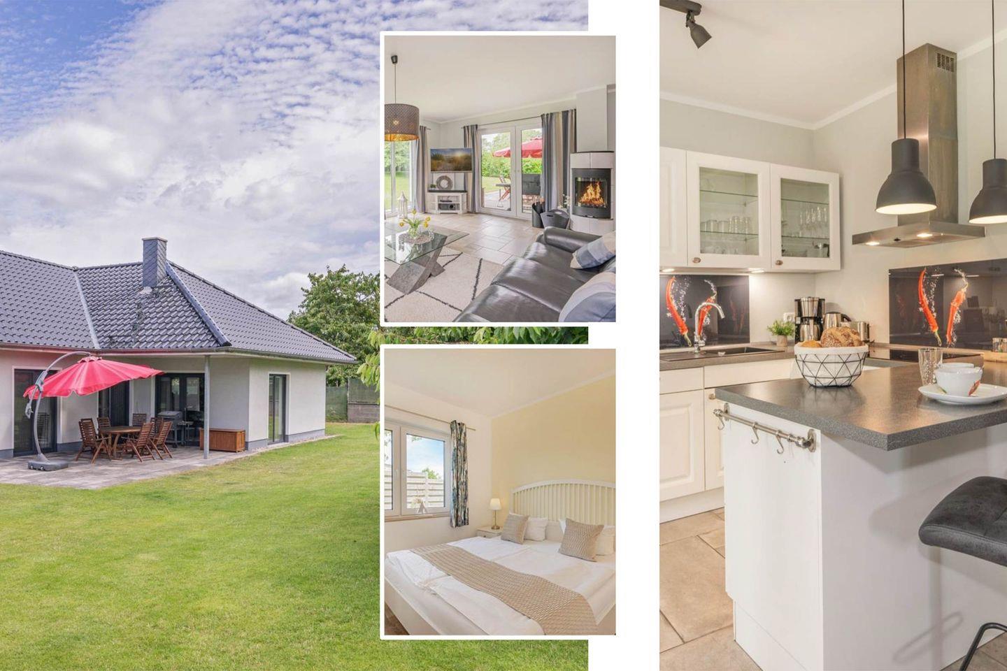 Das freistehende Ferienhaus Zirchow 3 bietet mit 126 m² Platz für bis zu 8 Personen und zeichnet sich durch eine moderne Ausstattung aus. Es verfügt über drei Schlafzimmer, zwei Bäder mit bodengleichen Duschen, eine offene Küche, Kaminofen, überdachte Terrasse, Garten sowie Privatparkplätze. Haustiere sind willkommen.