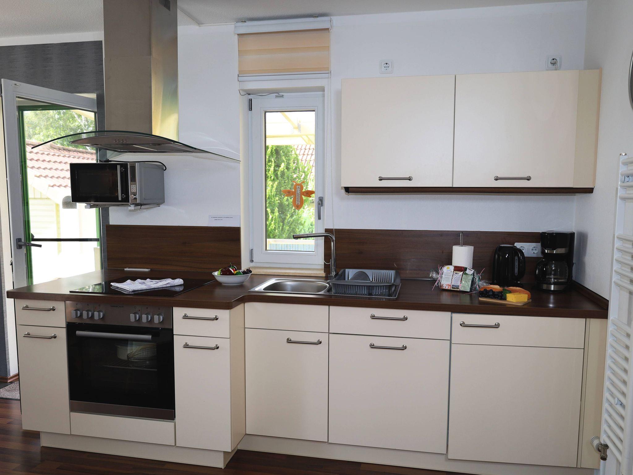 Die moderne Küchenzeile bietet alles, was Sie für kulinarische Genüsse benötigen ? vom Ceranherd über Backofen und Mikrowelle bis hin zu Kaffeemaschine, Wasserkocher und Toaster.