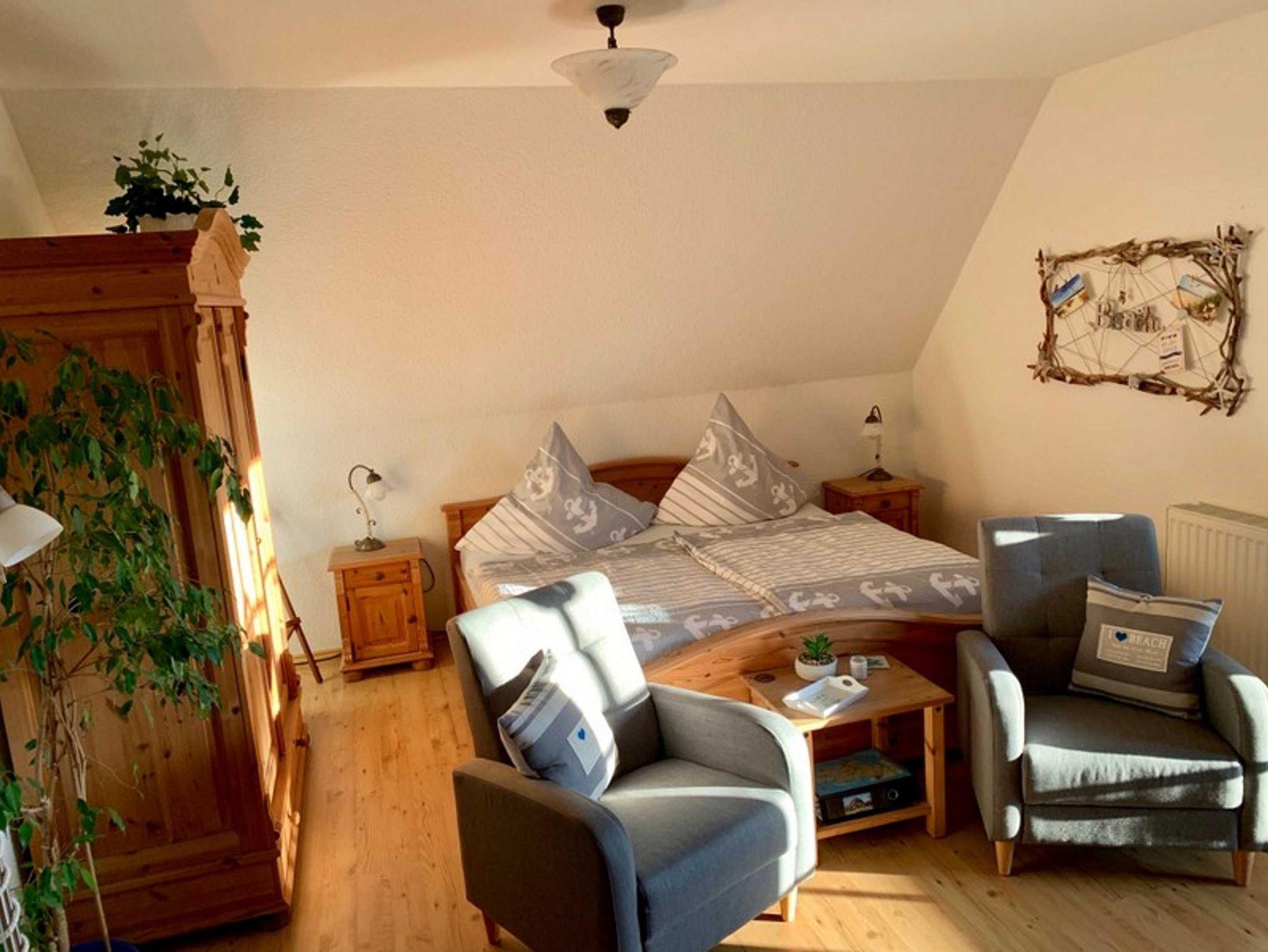 Unsere 40m² geräumige Ferienwohnung ist in der oberen Etage eines reet gedeckten Einfamilienhauses