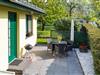 Zum Haus gehört eine Terrasse mit Gartenmöbeln, Spielplatz mit Trampolin, Sonnenschirm und Grill.