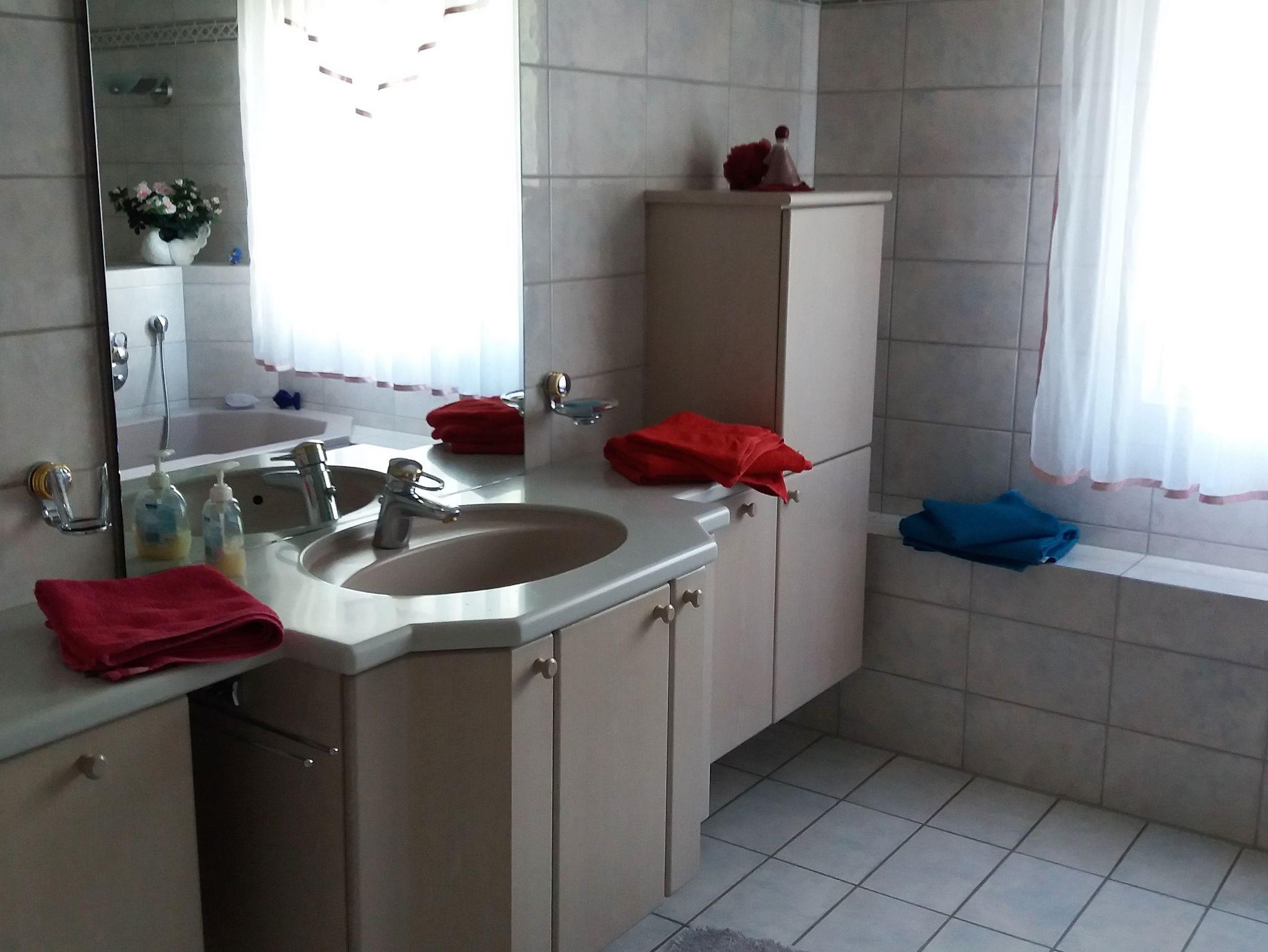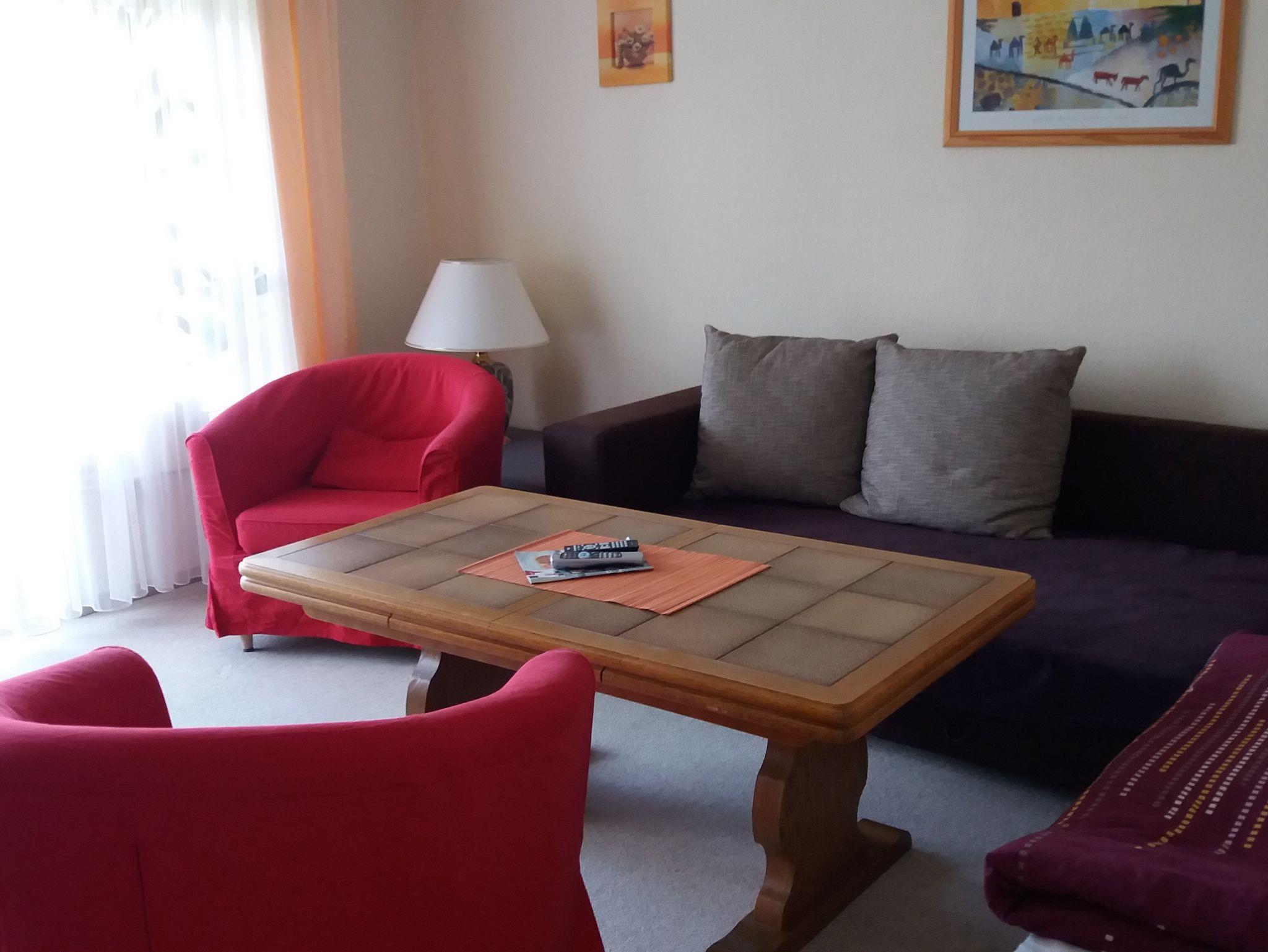 Die Ferienwohnung (79qm) ist bestens geeignet für 1 bis 4 Personen. Das Schlafzimmer ist ausgestattet mit einem Doppelbett. Im geräumigen Wohnzimmer können Sie es sich auf der Couch mit TV gemütlich machen. Auch ein Kamin lädt zu gemütlichen Stunden ein. Vom Wohnzimmer aus gelangen Sie zum Balkon, auf dem Sie entspannt den Tag ausklingen lassen können. Die voll ausgestattete Küche mit Herd, Backofen, Kühlschrank, Geschirrspüler, Kaffeemaschine, Wasserkocher und Essecke lässt keine Wünsche offen. Das Badezimmer mit Badewanne, Dusche und Fön rundet das Gesamtbild ab. Das WC ist separat. Handtücher und Bettwäsche sind vorhanden. WLAN ist kostenlos.