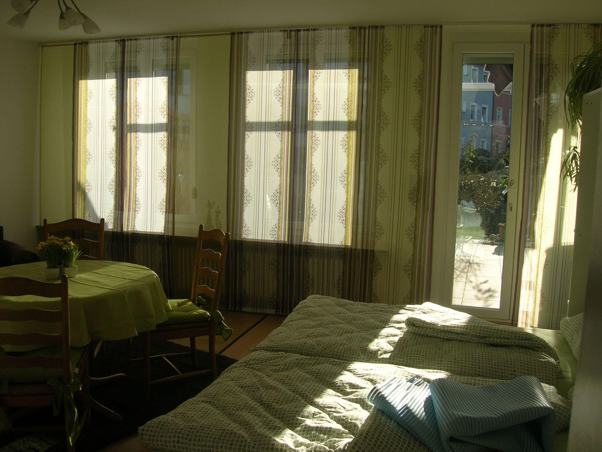 Im Appartement befindet sich ein Doppelbett mit 2 Einzelmatratzen (je 90x200cm) und eine Schlafcouch (140x190cm). Ein Baby-Reisebett stelle ich bei Bedarf gerne kostenlos zur Verfügung.