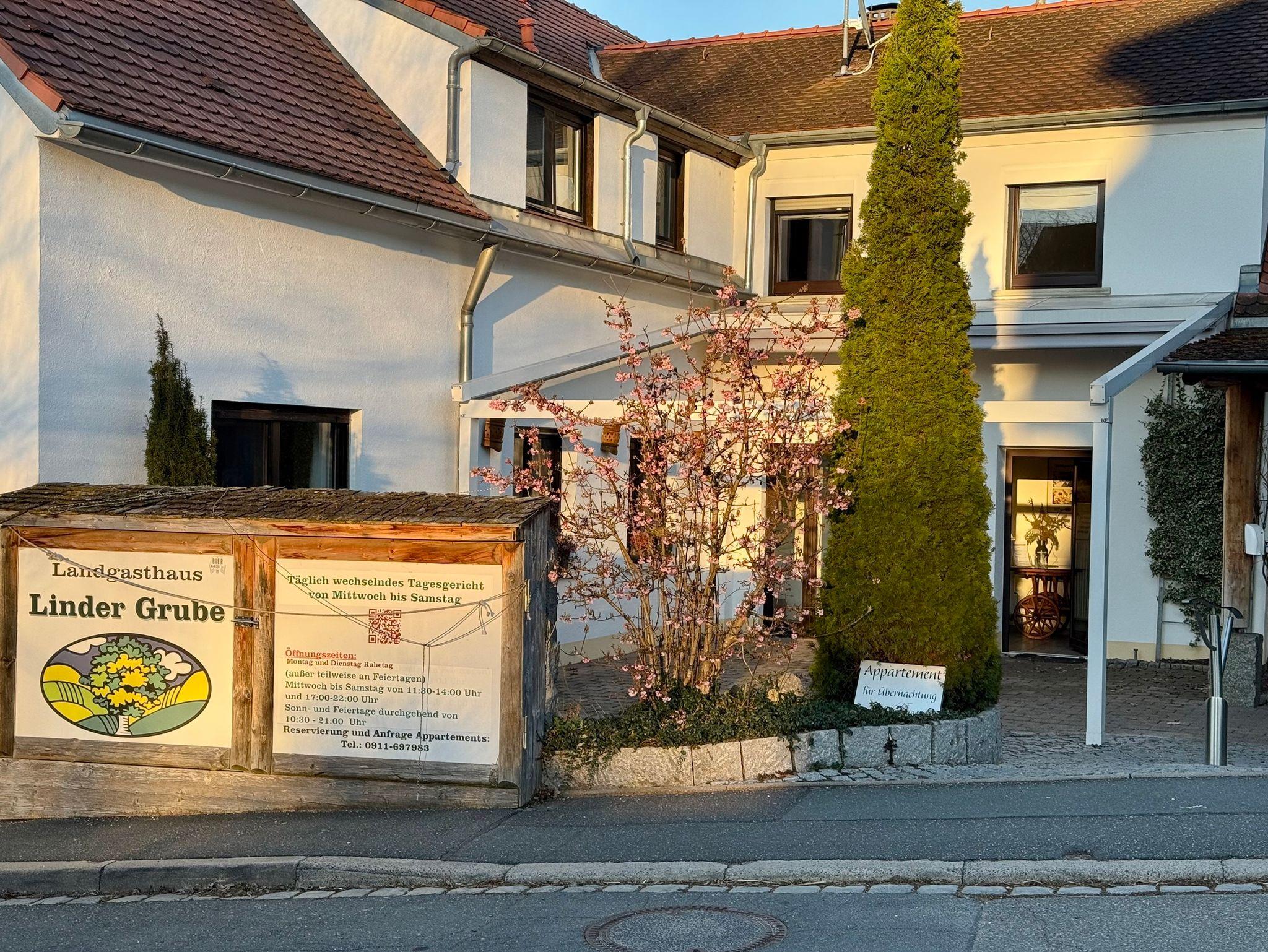Die Ferienwohnung befindet sich nur 900 Meter vom Playmobil-Funpark entfernt und ist etwa 1 Kilometer von der S-Bahn-Station in Richtung Nürnberg/Ansbach entfernt. Sie liegt im ersten Stock direkt über der Gaststätte, die von Mittwoch bis Sonntag geöffnet hat. Dort kocht der Chef persönlich im Landgasthaus Linder Grube und bietet saisonale fränkische Spezialitäten an. In der näheren Umgebung gibt es zahlreiche Einkaufsmöglichkeiten, die mit dem Auto schnell erreichbar sind. Kostenlose Parkplätze befinden sich direkt vor und neben unserem Haus.