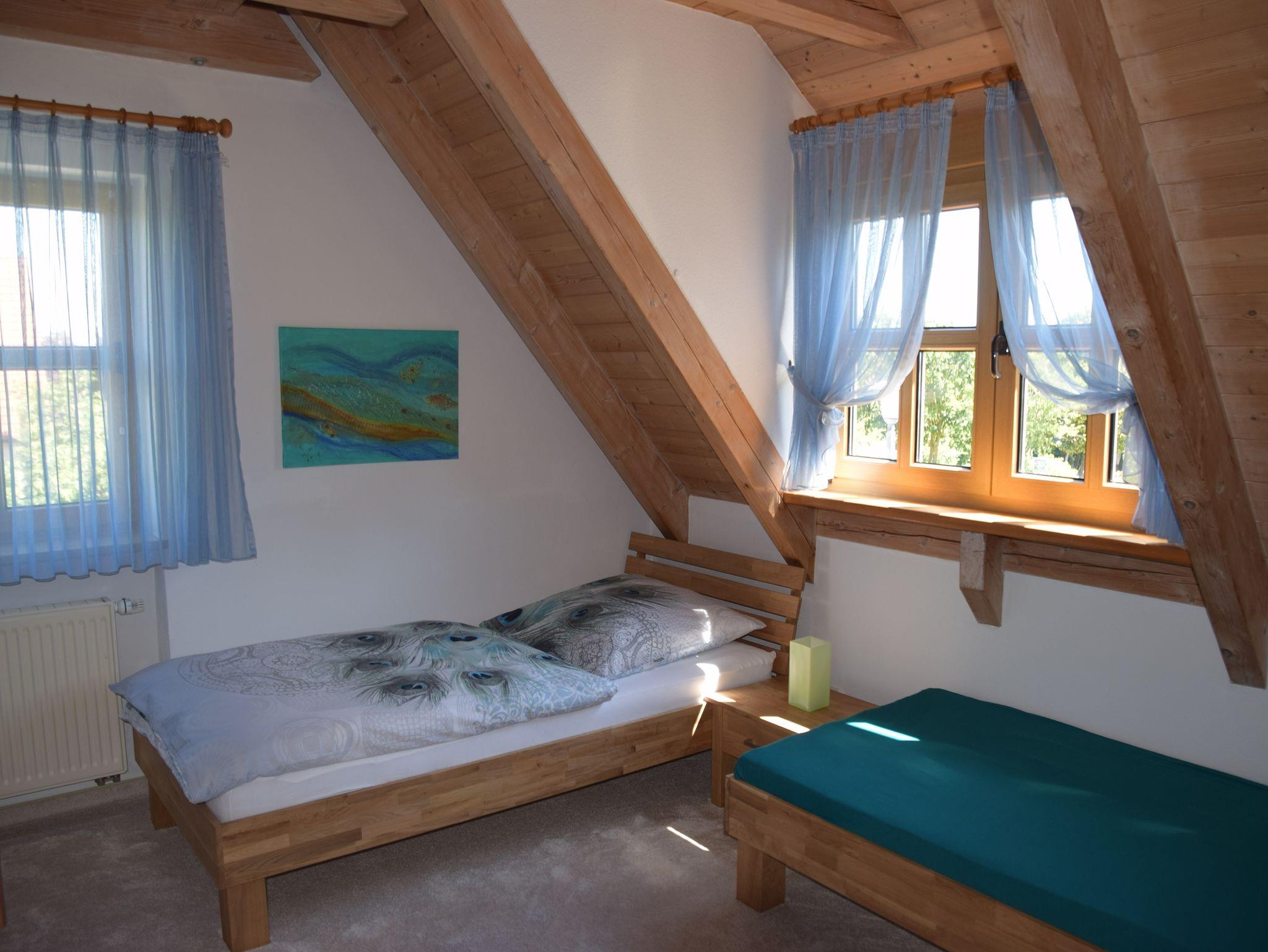 Die großzügig geschnittene Ferienwohnung (Nichtraucher) in Waldrandlage ist geeignet für Familien bis zu 6 Personen. Ein Spielplatz befindet sich in direkter Nachbarschaft. Der PLAYMOBIL Fun Park befindet sich nur 3km entfernt, ebenso ist die Carrera World in 4km zu finden. Durch die S-Bahn Anbindung erreichen Sie den Nürnberger Hauptbahnhof in nur 13 Minuten. Die Nürnberger Messe ist in ca.30 Minuten mit dem Auto erreichbar. Supermärkte befinden sich in Roßtal, Zirndorf und Oberasbach.