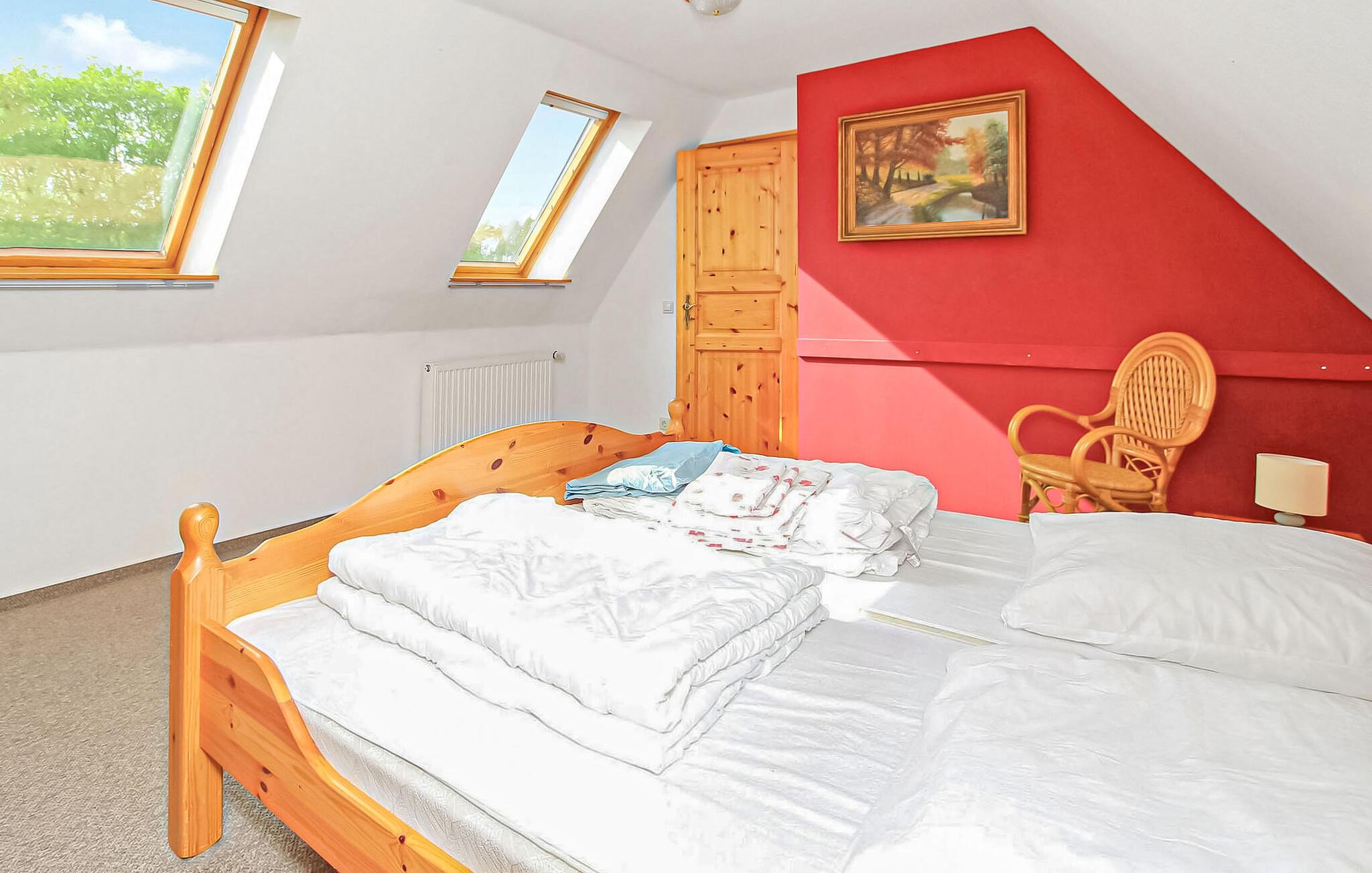 Blot få skridt fra Plauer-søen og roligt beliggende midt i naturen ligger der den ene af to ferielejligheder for op til 9 personer i et separat sommerhus på den cirka 1.400 kvadratmeter store villaejendom med tilstødende enge. En lille butik med frisk bagværk hver dag, havnen og en legeplads ligger kun få minutters gang væk. Yderligere shopping og fritidsaktiviteter samt caféer og restauranter findes i den lille by Malchow, cirka 12 km væk. Denne ikke-ryger lejlighed med separat indgang er udstyret med insektbeskyttelse på vinduerne og er centralt opvarmet. Den cirka 110 kvadratmeter store lejlighed for op til 8 voksne og 1 baby strækker sig over to etager. I stueetagen er der en stor spisestue (spisebord, pejs - brænde på forespørgsel) med et tilstødende køkken (elkomfur med ovn, køleskab med fryser, opvaskemaskine, mikroovn, diverse små køkkenmaskiner) og badeværelse (bruser, badekar) , toilet, vaskemaskine). Fra spisestuen fører en trappe til øverste etage til et åbent opholdsområde (polstret suite, lænestol, fladskærms-tv), et gæstetoilet og de 3 soveværelser. (1 x dobbeltseng 1,60 m bred, 1 x stor dobbeltseng - forbindelsesrum til 3. soveværelse med 2 trillesenge) Lejligheden har en stor, overdækket og møbleret sidde- og grillplads foran huset. En barneseng og høj stol er også tilgængelige her. Alle gæster har tilstrækkelige parkeringspladser (også til egne både, små telte osv.), sidde- og liggemuligheder på den store ejendom, cykelkælder, gratis Wi-Fi og ladestander til elbiler (11 kW, mod betaling). ). ledig. Den samlede pris inkluderer slutrengøring, el og vand. Betales på stedet: spa-afgift, brug af el-ladestation 0,48 EUR/KWH, brænde (hvis det ønskes) 4 EUR/kurv. Sengelinned og håndklæder kan lejes, eller du kan medbringe dit eget. Det er tilladt at medbringe et veltrænet, hustrænet kæledyr i denne ejendom. Flere dyr kræver ejerens samtykke før reservation. Den statsanerkendte ferieby Zislow i den vestlige del af Mecklenburg Lake District er malerisk beliggende direkte på den østlige bred af Lake Plauer og byder på adskillige muligheder for en ferie, der både er afslappende og begivenhedsrig. Udover en smuk badestrand og havnen med båd- og cykeludlejning er der en legeplads, en lille 'shopping-oase' i byen. og en ridehal. Med den røde dobbeltdækker-rundbus 'Plauer See', der også holder i Zislow, kan du besøge regionens vigtigste seværdigheder, såsom Müritz-bjørneskoven, klatreparken i Plau, sommerkælkebakken med den tilstødende abeskov eller klosterkomplekset i Discover Malchow og besøgscentret i naturparken Nossentiner/Schwinzer Heide. Forskellige butikker, restauranter, caféer og passagerbådstjenester kan findes i de to små byer Malchow (ca. 12 km) eller Plau am See (ca. 17 km).