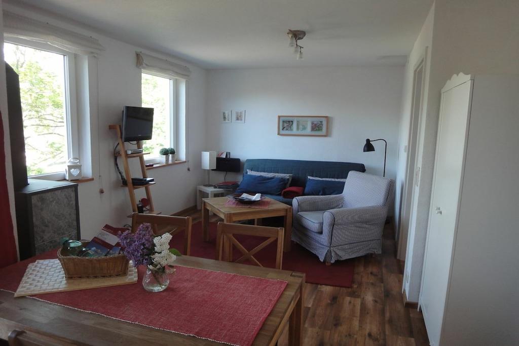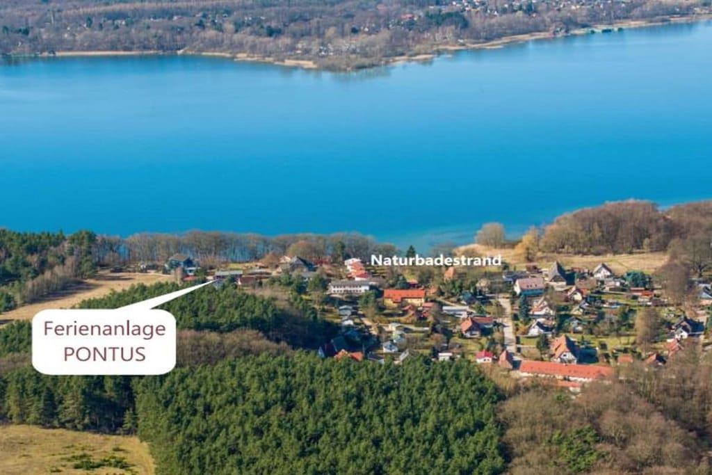Vi byder dig varmt velkommen til vores ferielejlighed i Pontus feriekompleks. En 4-stjernet ferie (klassificeret af den tyske turistforening) i hjertet af naturparadiset Mecklenburgs sødistrikt! Lejligheden er komfortabelt og hyggeligt møbleret med pejs, ideel til to personer, og tilbyder udsigt over søen. Lejligheden blev fuldstændig renoveret i vinteren 2023/24. Vores lejlighed har en stue/spisestue med pejs, et åbent køkken, et soveværelse med dobbeltseng, et badeværelse med bruser og toilet samt en balkon. Herfra kan du nyde solnedgangen. Der er delvist installeret myggenet. Komplekset blev bygget i 2008-2009.