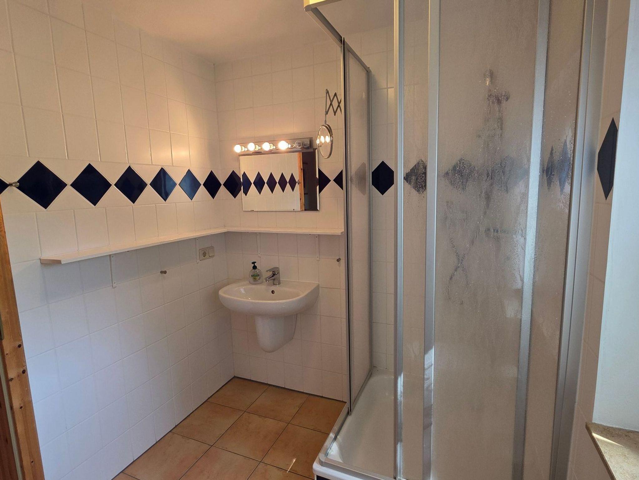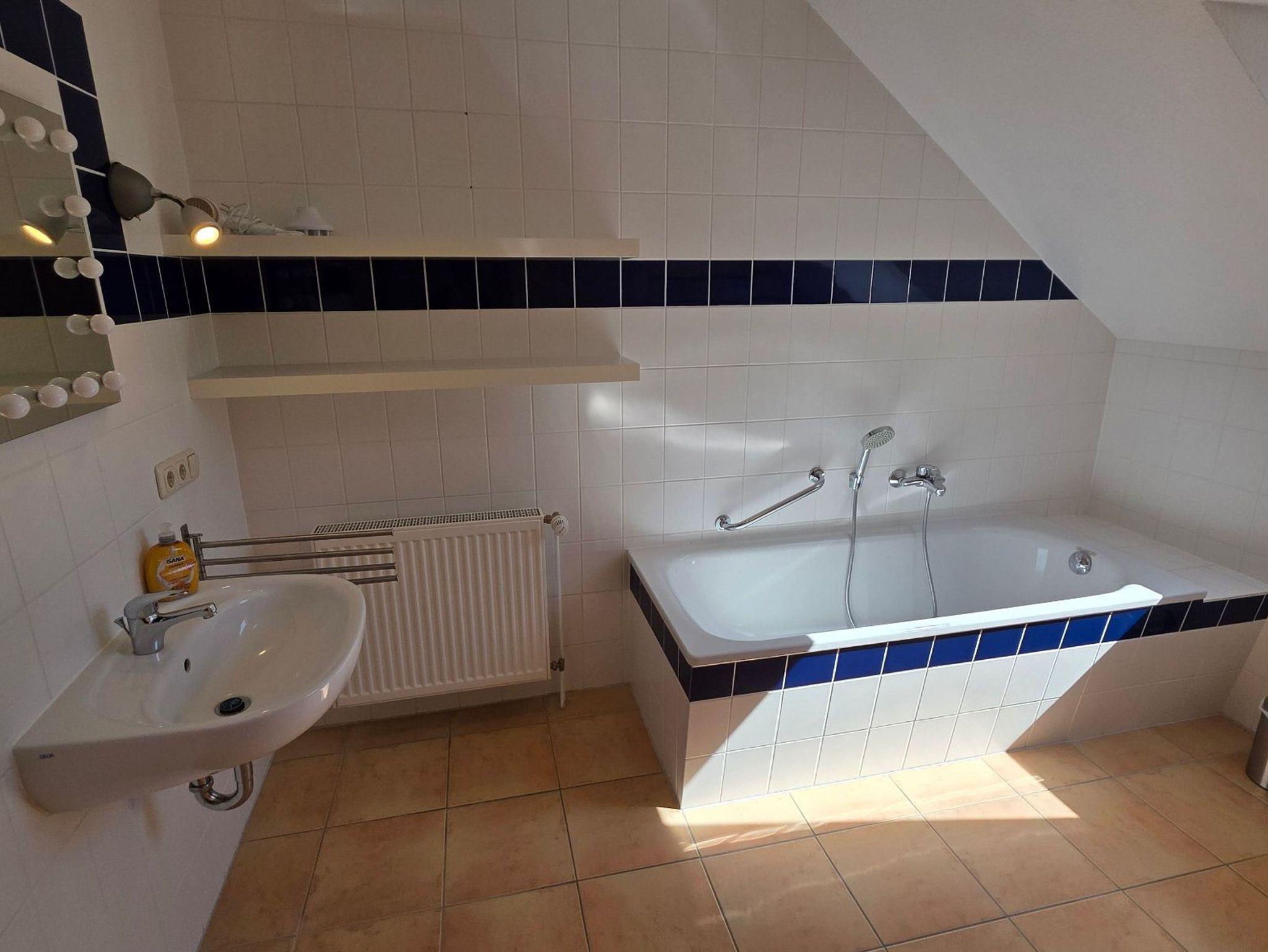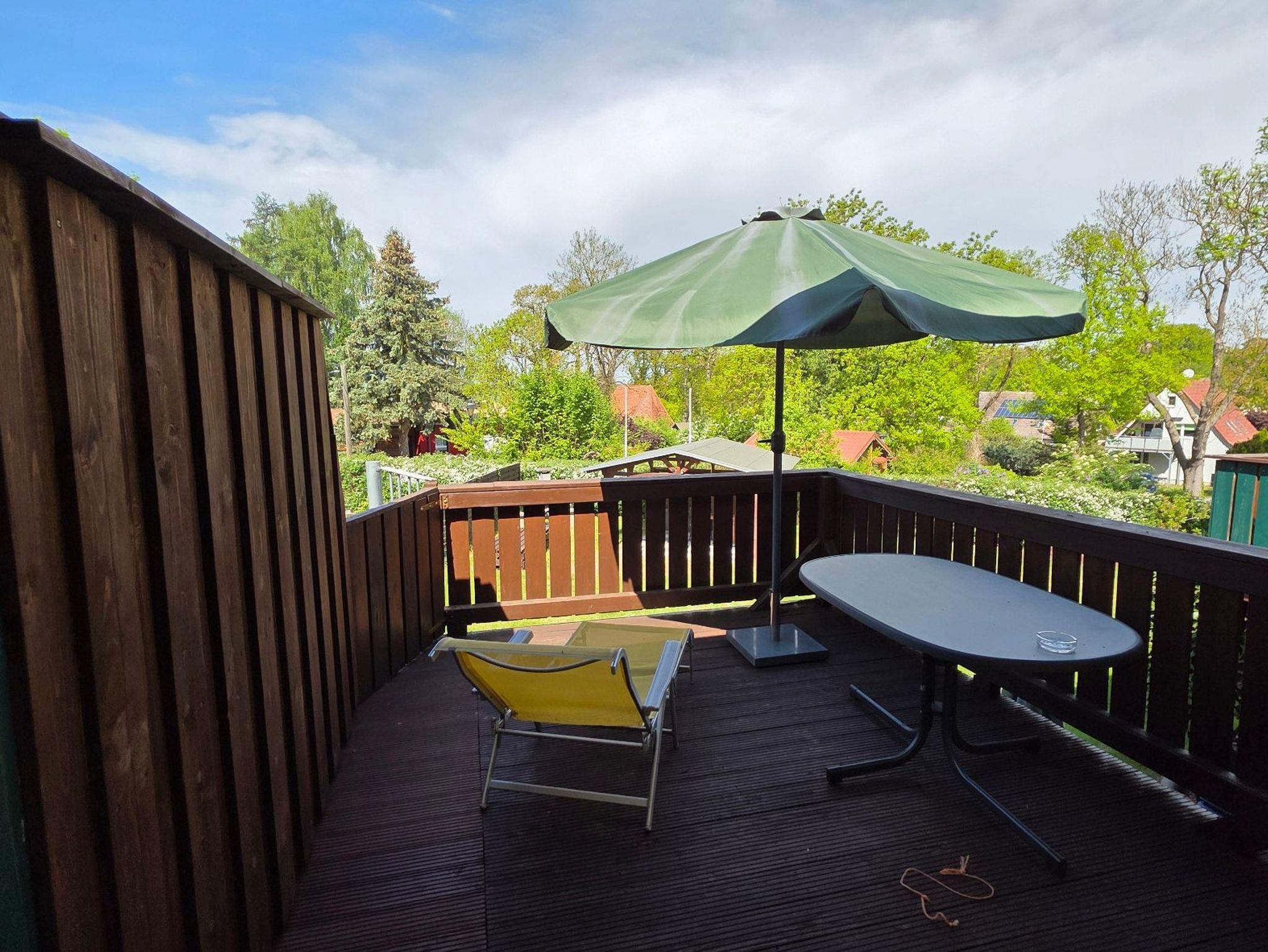 Die Ferienwohnung 4 mit befindet sich in der Ferienanlage Haus am See mit 100 qm auf 2 Etagen (Obergeschoss: Wohnzimmer mit Essplatz, große separate Küche, Gäste-WC mit Dusche, Dachgeschoss: 2 Schlafzimmer mit Doppelbett, 1 Schlafzimmer mit 2 Einzelbetten, Bad/Wanne/WC, ). Aus dem Wohnzimmer gelangt man direkt auf den großen Südwest-Balkon. Vom Balkon gelangt man über eine Spindeltreppe in den Garten.