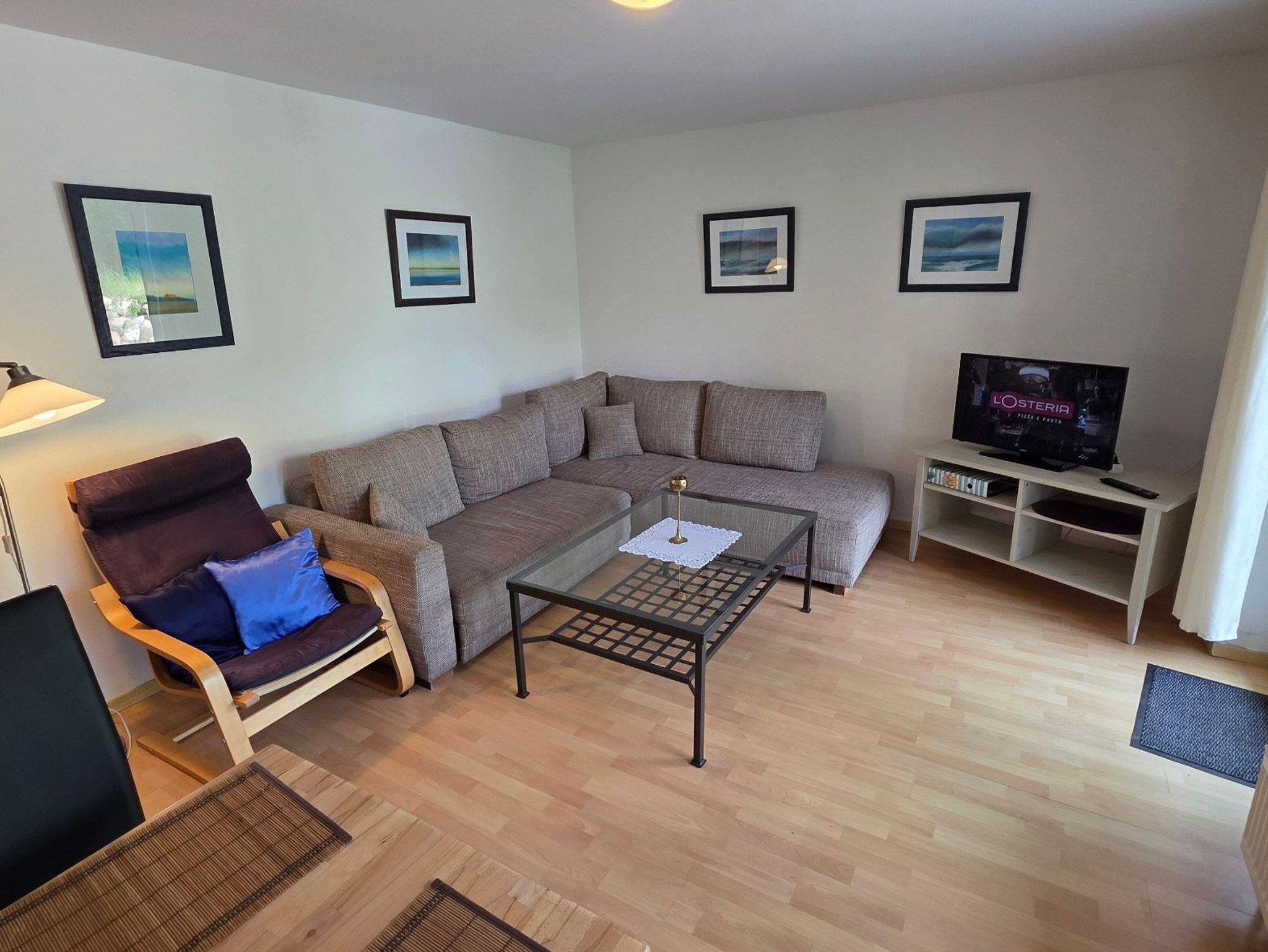 Die Ferienwohnung 2 befindet sich im Erdgeschoss in der Ferienanlage Haus am See mit 69 qm (Schlafzimmer mit Doppelbett, Küche mit Essplatz, Wohnzimmer mit Schlafcouch für 2 Personen). Aus dem Wohnzimmer gelangt man direkt auf die grosse Südwest-Terrasse und in den Garten.