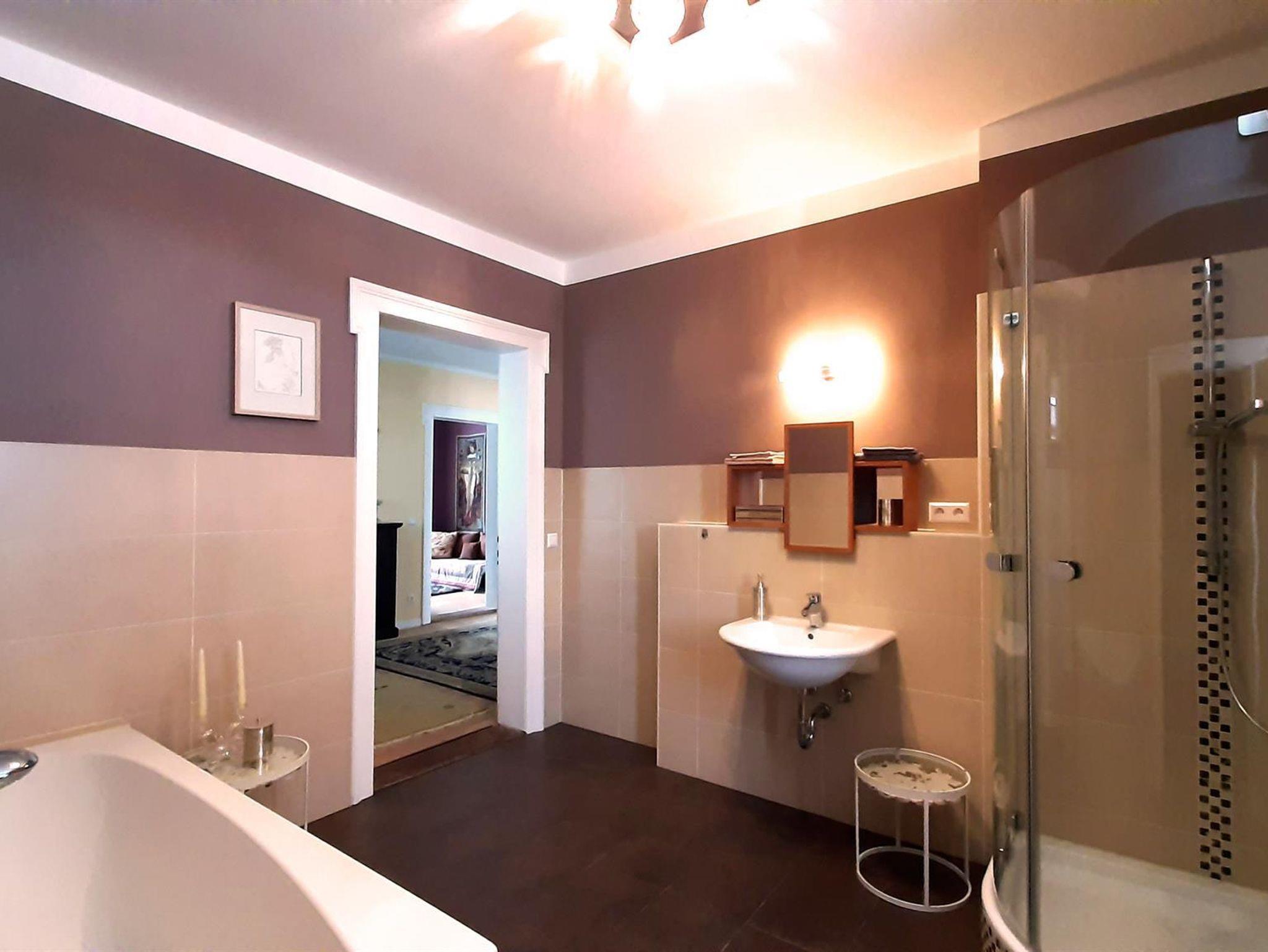 Wohltuend weiträumig und gemütlich präsentiert sich die komfortabel ausgestattete Wohnung. Sie verfügt über 2 große Schlafzimmer, 1 geräumiges Bad mit Dusche, Badewanne und einem separatem WC, sowie einer komplett ausgestatteten Küche mit Essplatz. An das Wohnzimmer, mit seinem antiken Schmuckofen grenzt die Veranda an, die mit einem atemberaubenden Ausblick auf das Zittauer Gebirge besticht.