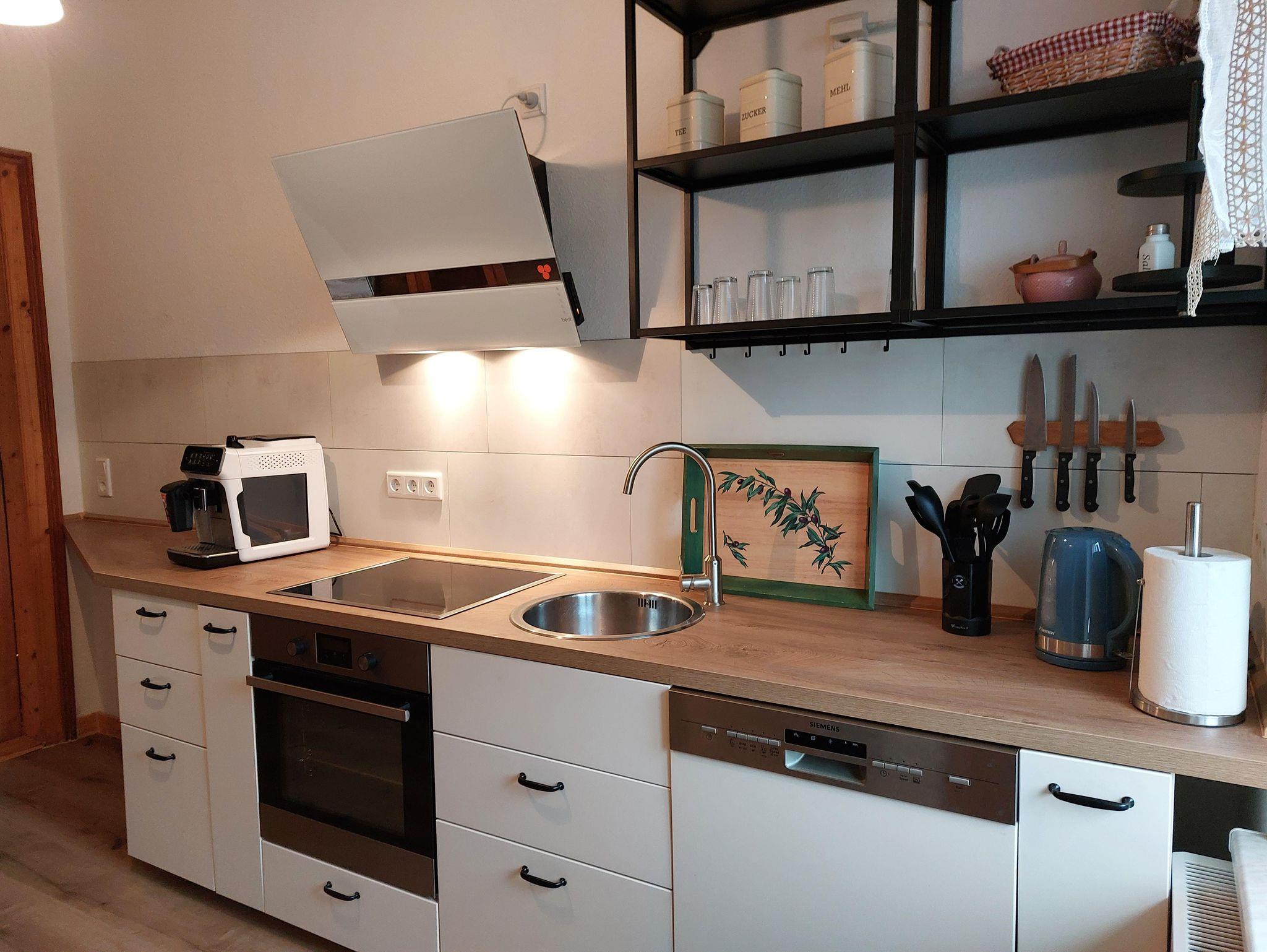Die moderne Küche bietet Ihnen die perfekte Möglichkeit, ein köstliches Abendessen zu kochen oder einen kleinen Snack.
