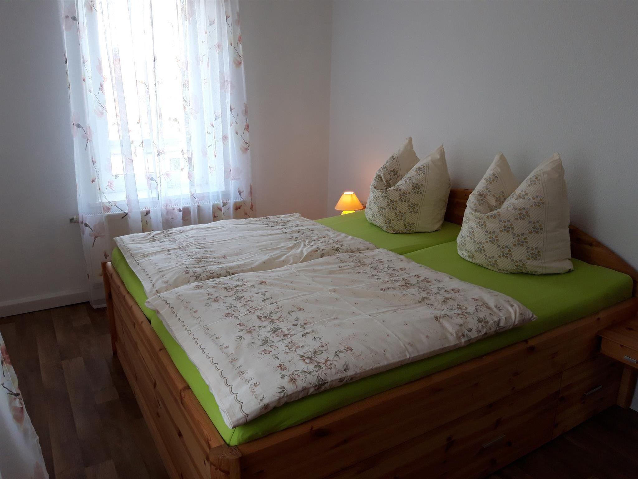 Im Schlafzimmer steht ein Doppelbett und ein dreitüriger kombinerter Kleider- & Wäscheschrank. Für die Aufbettung steht ein Klappbett zur Verfügung.