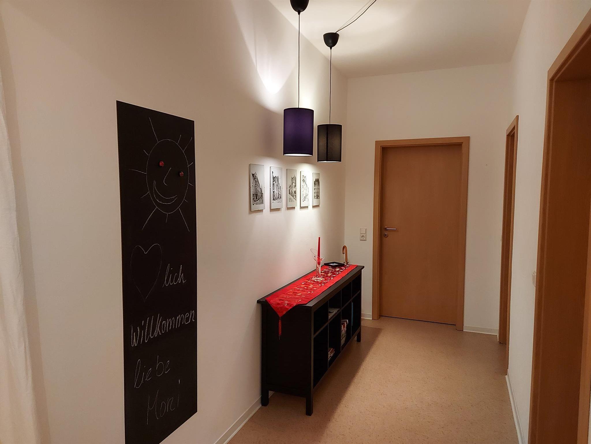 Die Ferienwohnung Bei Hanna, benannt nach der guten Seele des Hauses, ist im 1. OG gelegen und 71 m² groß, hell und geräumig und mit einem Balkon zur Gartenseite versehen, auf dem Sie den Tag in Ruhe ausklingen lassen können. Sie finden einen separaten Schlafraum mit einem komfortablen Doppelbett, ruhig gelegen zur Rückseite des Hauses, und eine zusätzliche Schlafcouch in einem abgetrennten Bereich für weitere 2 Gäste vor. Die Wohnung ist modern ausgestattet, in der Küche können Sie Mikrowelle, Spülmaschine, Kühl- und Gefrierschrank nutzen. Das großzügige Bad verfügt über eine bodengleiche Dusche und ist hell und freundlich. In der Wohnung sind Flat-, Kabel-TV sowie Internet vorhanden. Die Zustellung eines Kinderbettes ist möglich und auch für Fahrräder gibt es im Haus einen separaten Abstellraum. Parkmöglichkeiten gibt es vor dem Haus oder ca. 2 Gehminuten entfernt, kostenfrei außerhalb des Stadtringes.