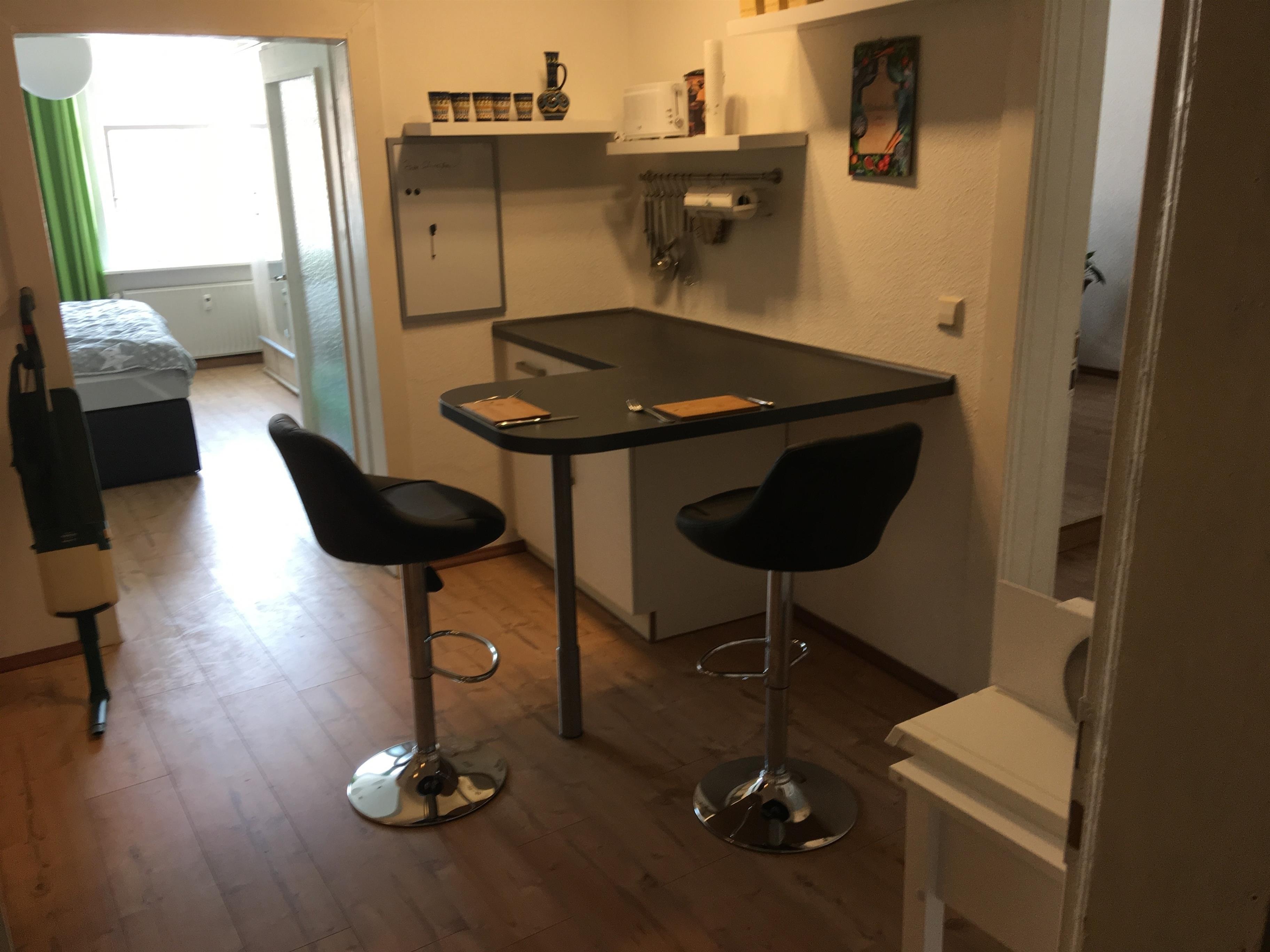Ihnen stehen neben einem Kühlschrank auch eine Kaffeemaschine und eine Mikrowelle zur Verfügung.