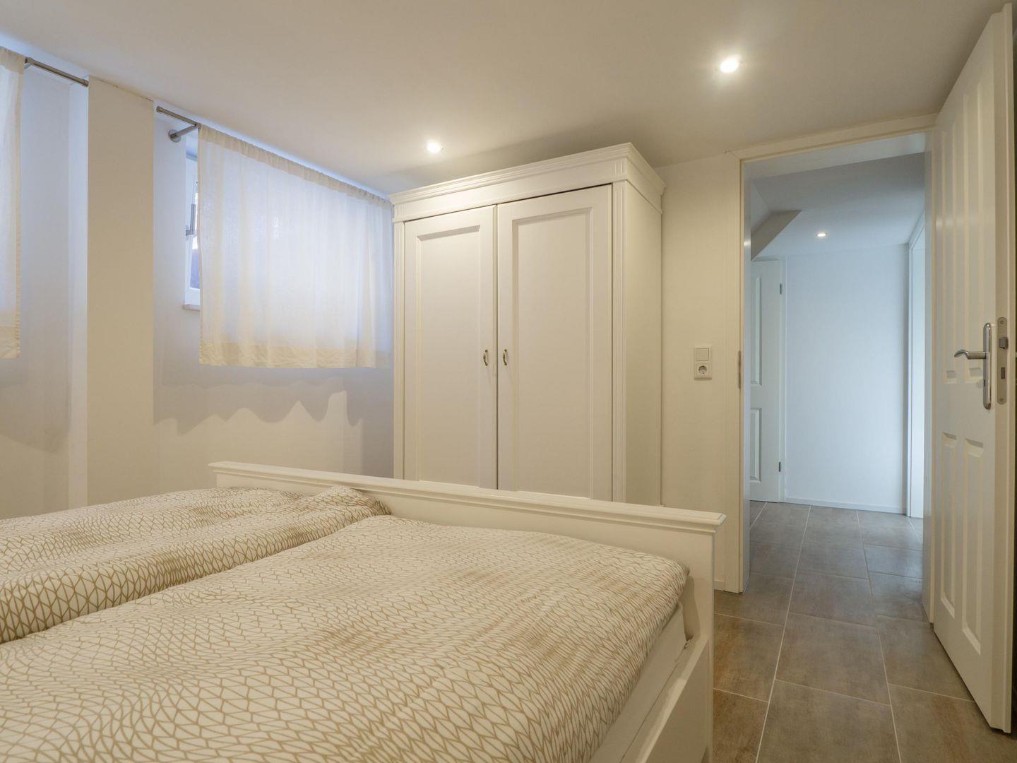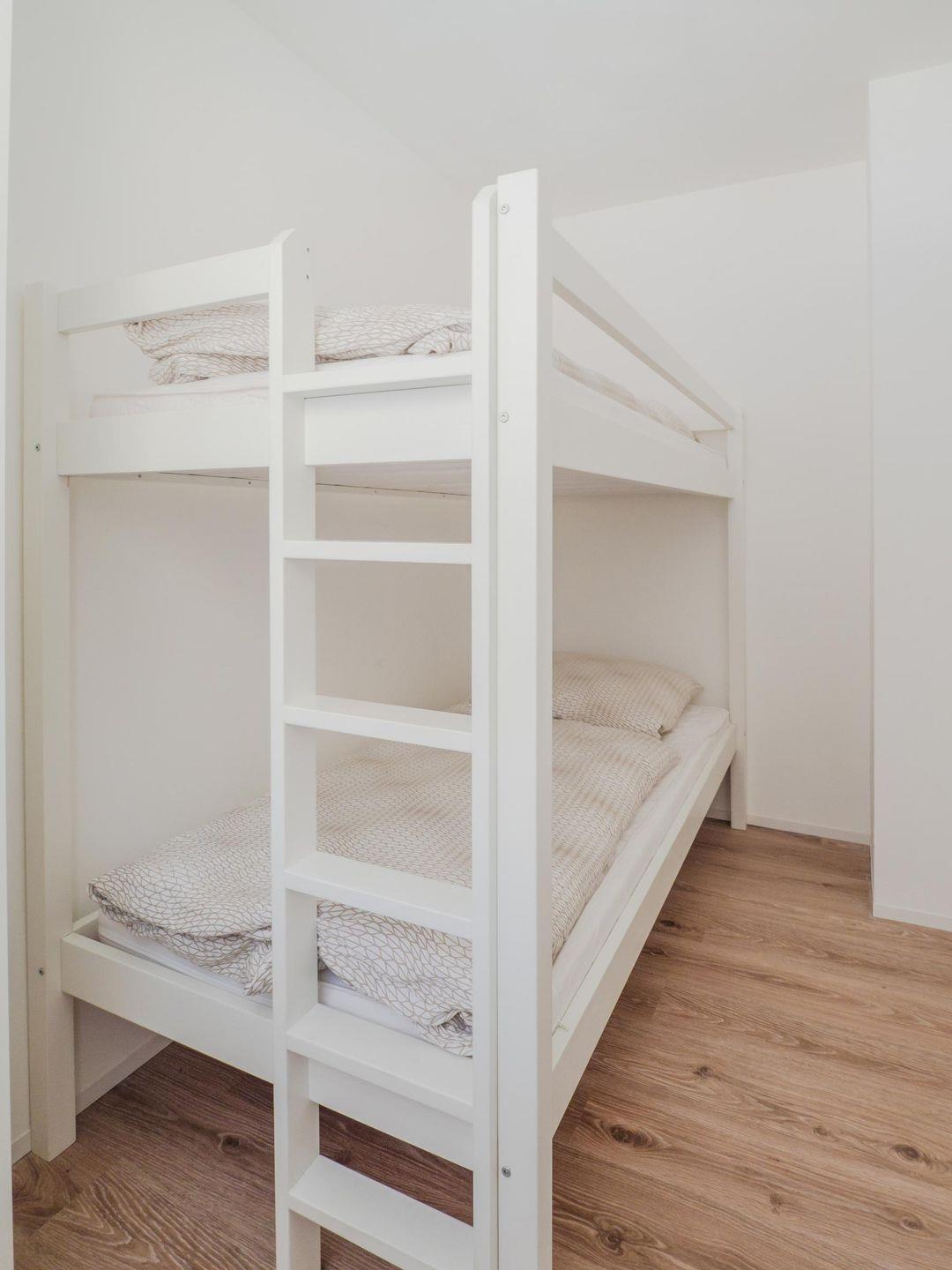 Die Größe des Hauses beträgt 160 m² und ist somit perfekt für große Gruppen mit bis zu 9 Personen geeignet. Es sind vier Schlafzimmer vorhanden (drei Doppelbetten, ein Etagenbett, ein Einzelbett), voll ausgestattete Küche mit Essbereich und Couchecke mit Flat TV. Es gibt zwei Badezimmer mit Dusche, WC und Waschbecken, einen Gemeinschaftsraum mit Tischfußball und Dartscheibe sowie nebenan den Saunabereich mit separater Dusche.
