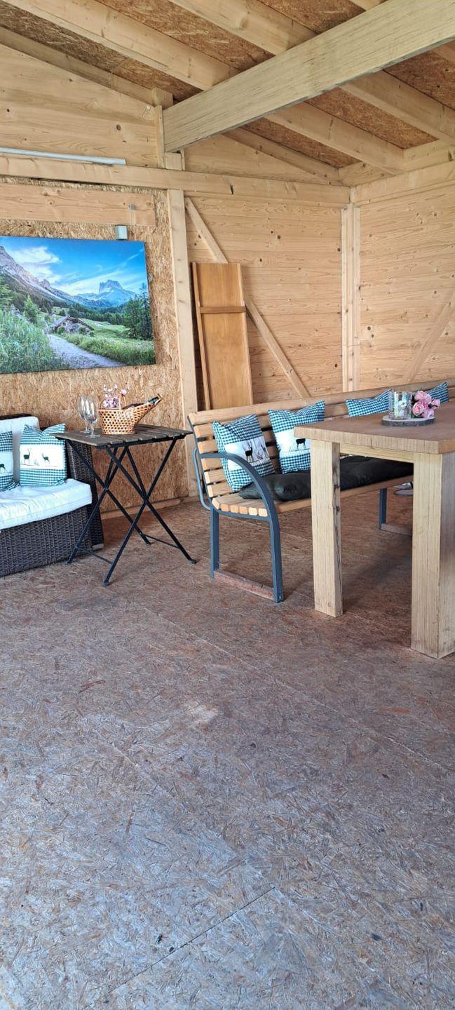 Wintergarten bzw. eine Partyhütte zur Verfügung, damit Sie auch bei schlechtem Wetter die Natur genießen können. Der Garten ist auch ein idealer Ort, damit sich die kleinen Gäste so richtig austoben können.