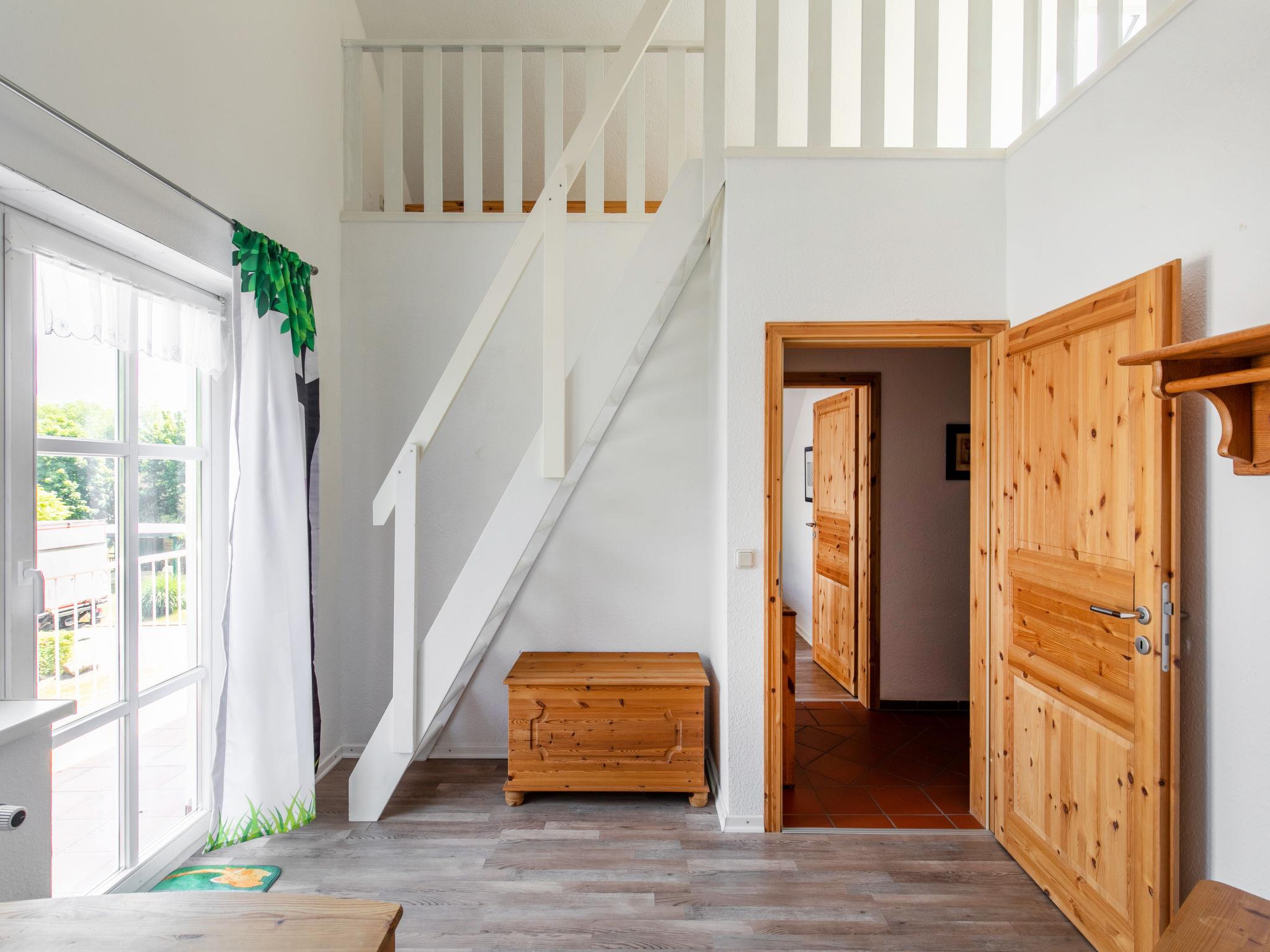 "Losentitz", 4-room semi-detached house 125 m2 on 3 levels. Practical and cosy furnishings: living/dining room with Scandinavian wood stove, dining table, cable TV and radio. Exit to the terrace. Kitchen (oven, dishwasher, 4 ceramic glass hob hotplates, toaster, kettle, microwave, electric coffee machine). Sep. WC. Upper floor: 2 double bedrooms with sloping ceilings. Exit to the balcony. Walk-through room with sloping ceilings with 2 beds. Bath/shower/WC. 2nd upper floor: (ladder) open gallery, ceiling height 160 cm with 2 sleeping facilities. Gas heating. Small balcony 3 m2, terrace 12 m2, garden, 300 m2. Terrace furniture, barbecue, deck chairs. Facilities: washing machine. Internet (WiFi). Parking (2 cars). Please note: suitable for families. Non-smoking house. Maximum 2 pets/ dogs allowed. Smoke alarm, fire extinguisher. Bookings accepted for holiday purposes only. Instead of an enclosed bedroom, some sleeping areas are located in an open-plan area (gallery, alcove, etc.).