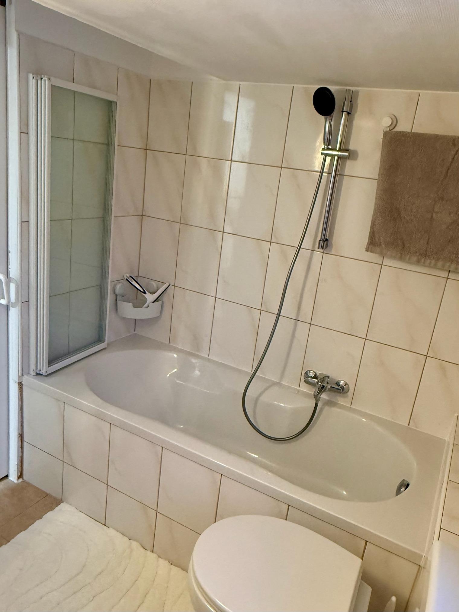 Zudem gibt es ein kleines Tageslichtbad mit Badewanne sowie einen großzügigen Flur.