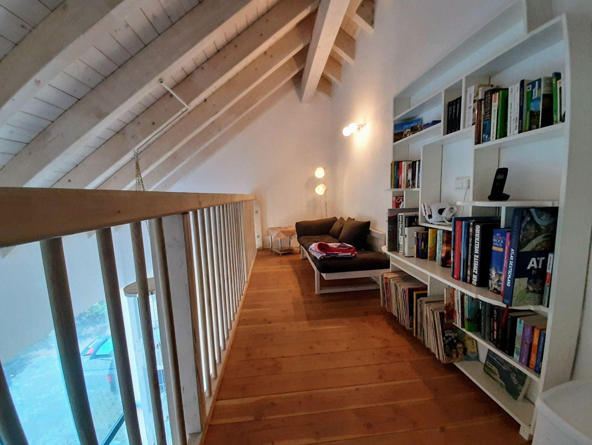 Das besondere dieses Ferienhauses ist der offene Wohnbereich als Galerie. Die Galerie durchbricht mehrere Etagen des Hauses und sorgt damit für Licht und Offenheit im ganzen Gebäude. Zwei Emporen bieten sich als weitere Rückzugsmöglichkeit oder Leseecke an, ohne komplett vom übrigen Wohngeschehen abgeschottet zu sein
