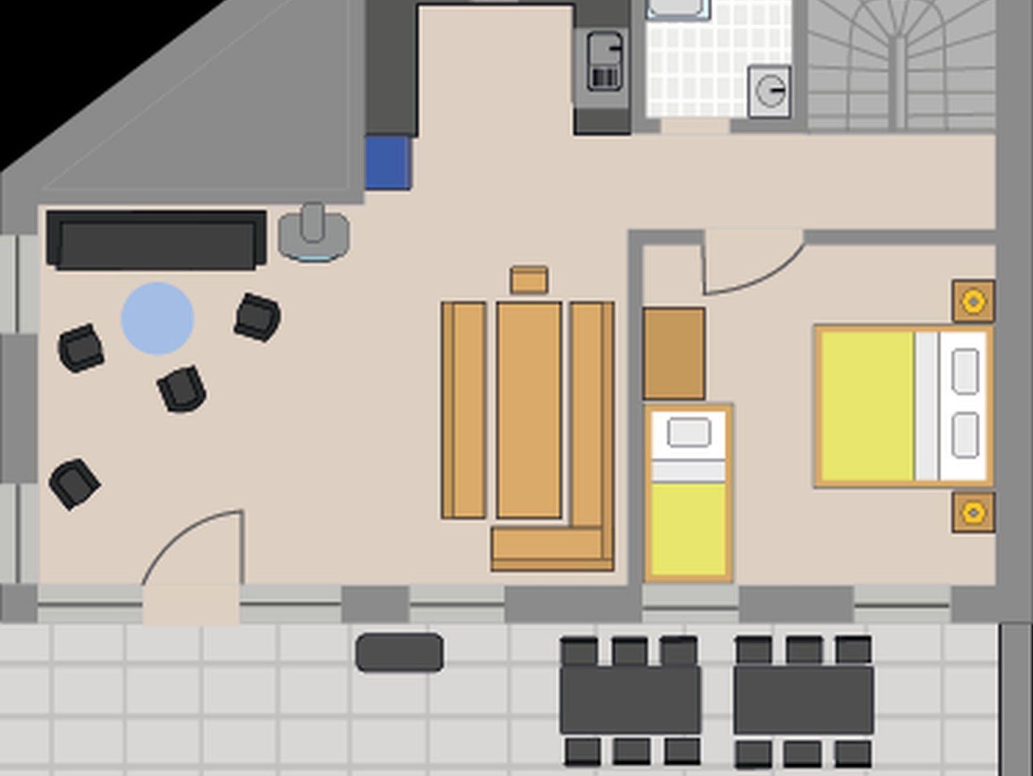Insgesamt finden in dem Haus 16 Personen Platz, davon maximal 14 Erwachsene. Es gibt zwei Zweibettzimmer, zwei Dreibettzimmer und ein Mehrbettzimmer mit acht Schlafplätzen. Zusätzlich gibt es auf den beiden Emporen noch eine Schlafcouch.
