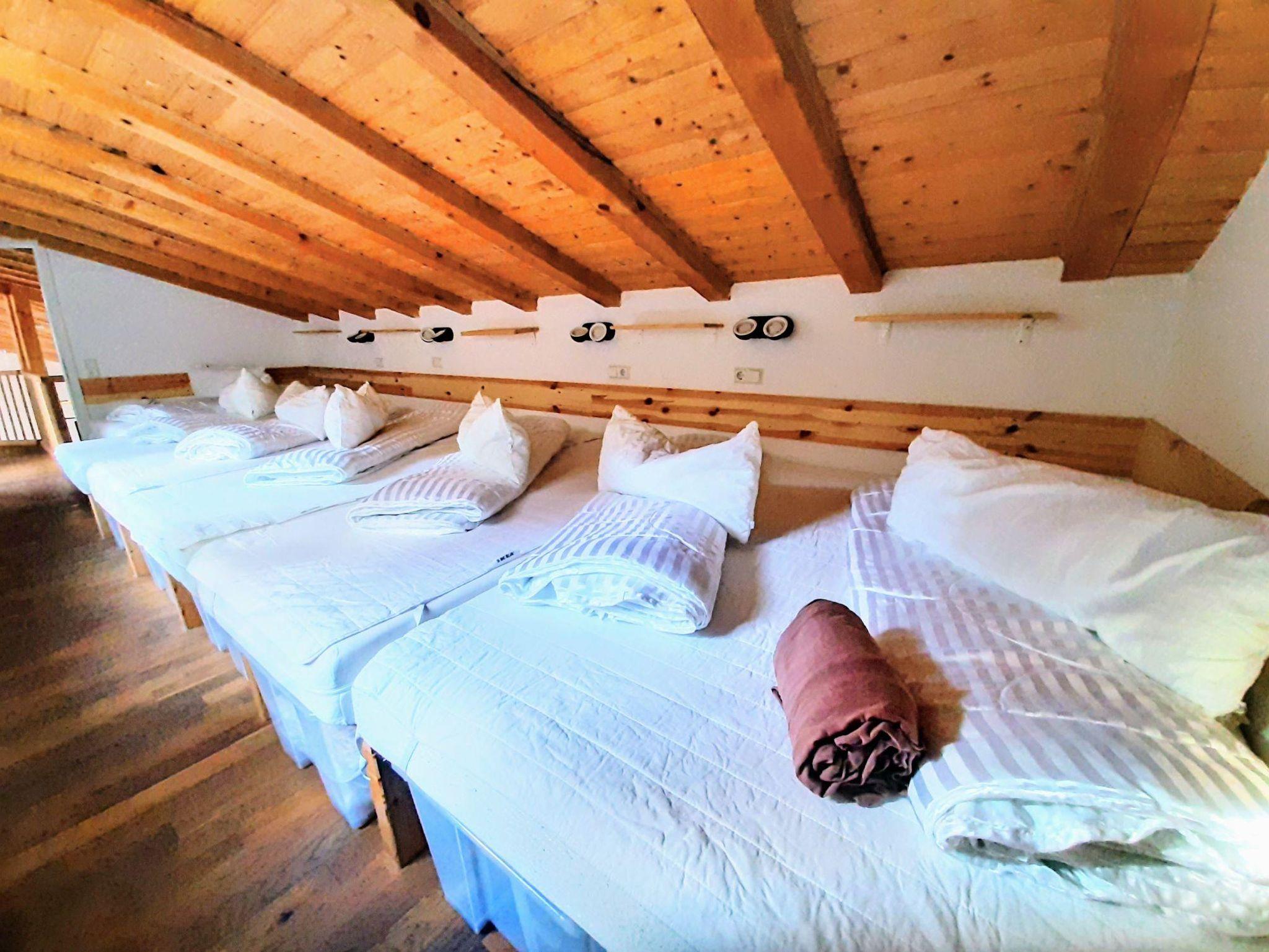 Die 27 Schlafplätze in 9 Schlafzimmern verteilen sich auf 3 Zweibettzimmer, 4 Dreibettzimmer, 1 Vierbettzimmer und 1 Mehrbettzimmer mit 6 Schlafstätten.