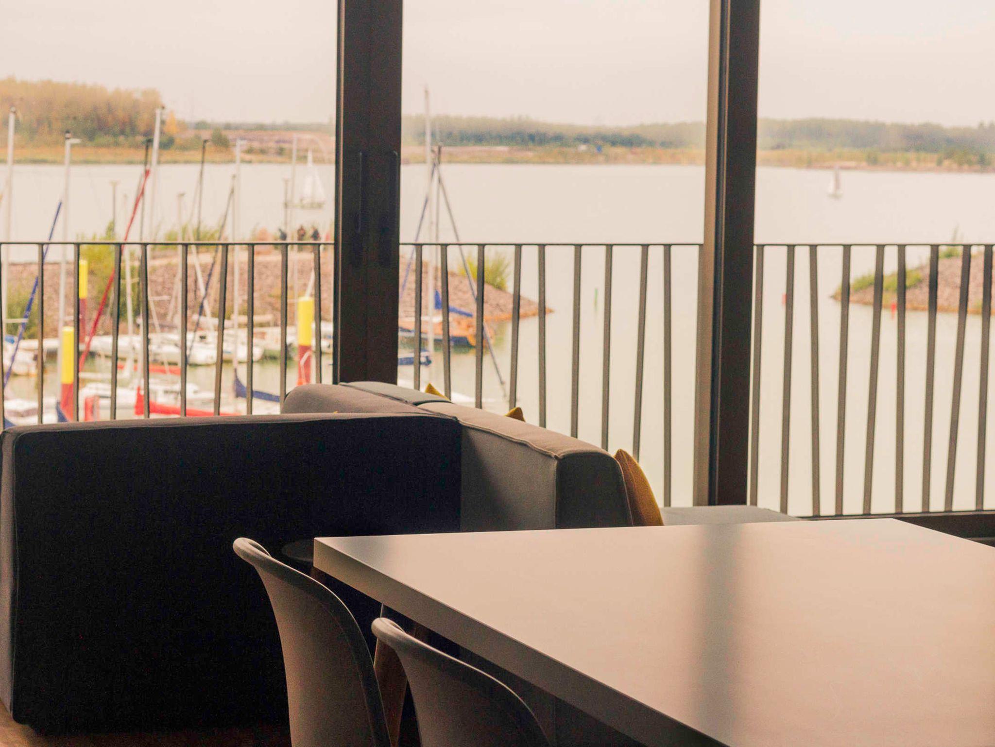 Sehr schön ausgestattetes Appartement sogar mit Infrarotkabine mit tollem Blick auf den Zwenkauer See. Durch die großen Wohnzimmerfenstertüren, die man in der Mitte komplett zur Seite schieben kann, hat man das Gefühl draußen zu sein. Das italienische Restaurant darunter ist definitiv zu empfehlen.