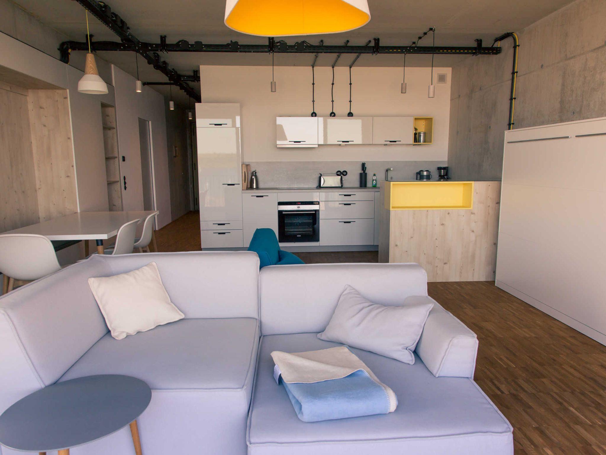 Der Industrial Style dieser Ferienwohnung ist Geschmackssache. Die Wohnung ist sehr groß, man hat sehr viel Platz und ist küchentechnisch bestens ausgestattet. Auch das Badezimmer beeindruckt. Jedoch die kühlen Betonwände und die sehr nüchterne Gestaltung erzeugen ein Akustik Problem, es schallt in der ganzen Wohnung,das ist weniger schön.