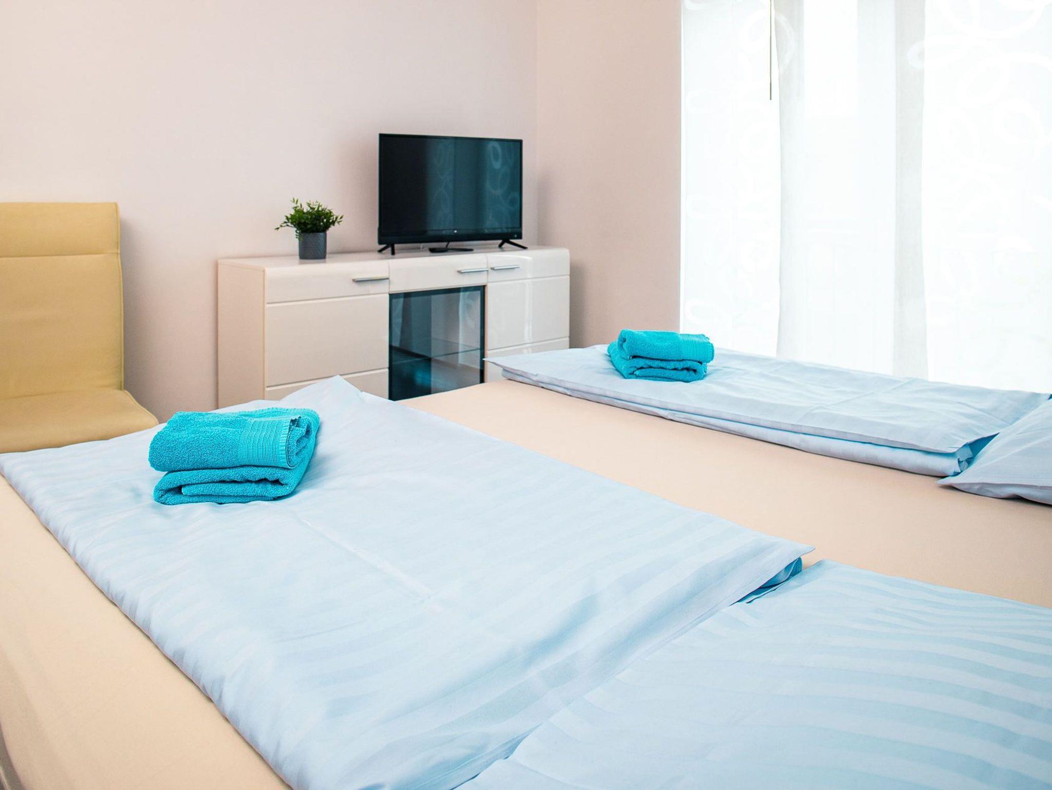Wohneinheit ist mit 3 Doppelbetten ausgestattet. Eine Aufbettung auf max. 8 Personen ist gegen Aufpreis