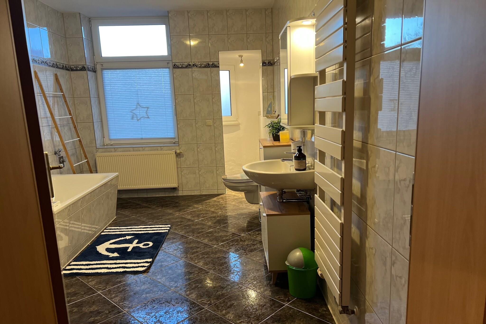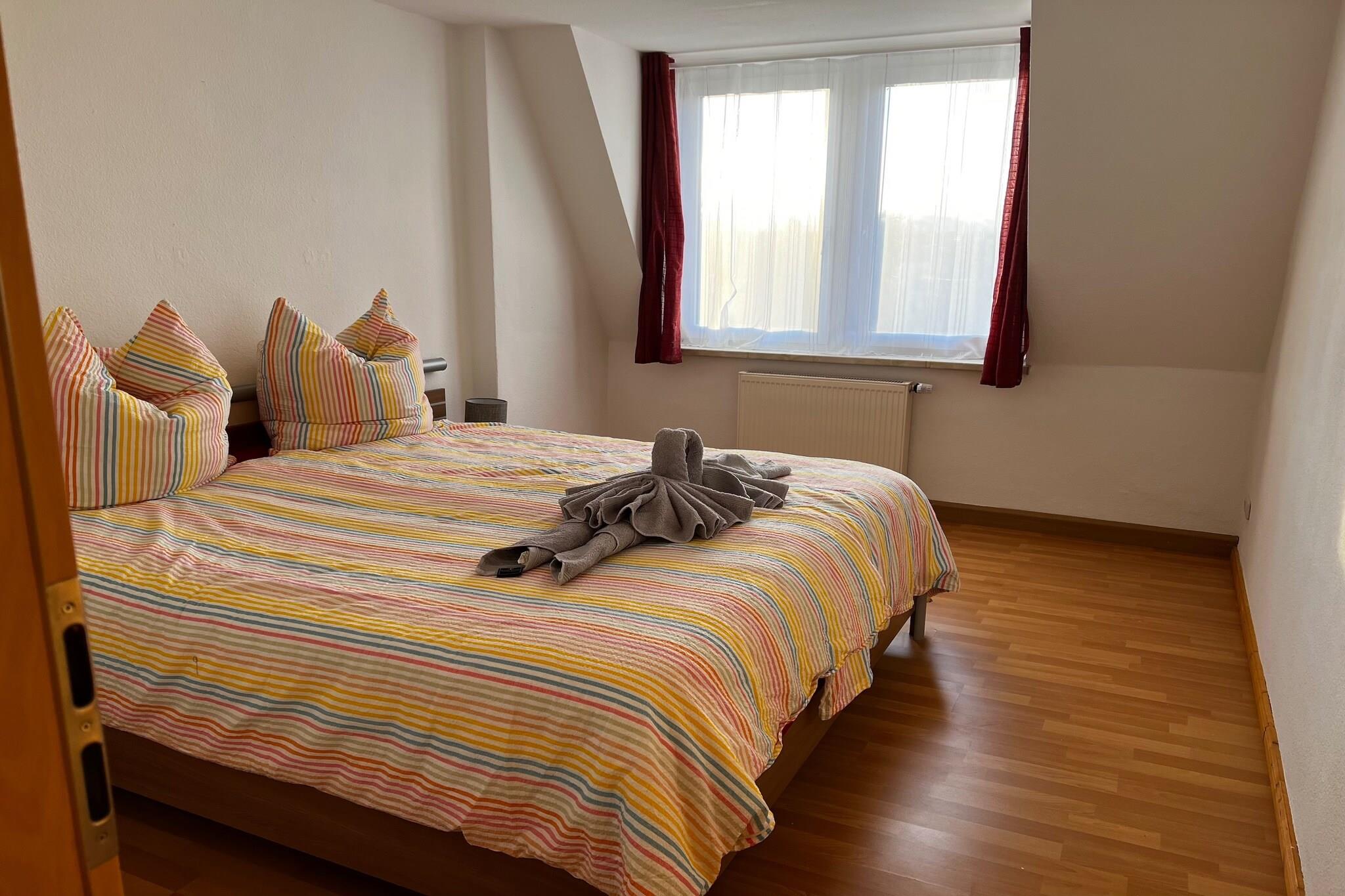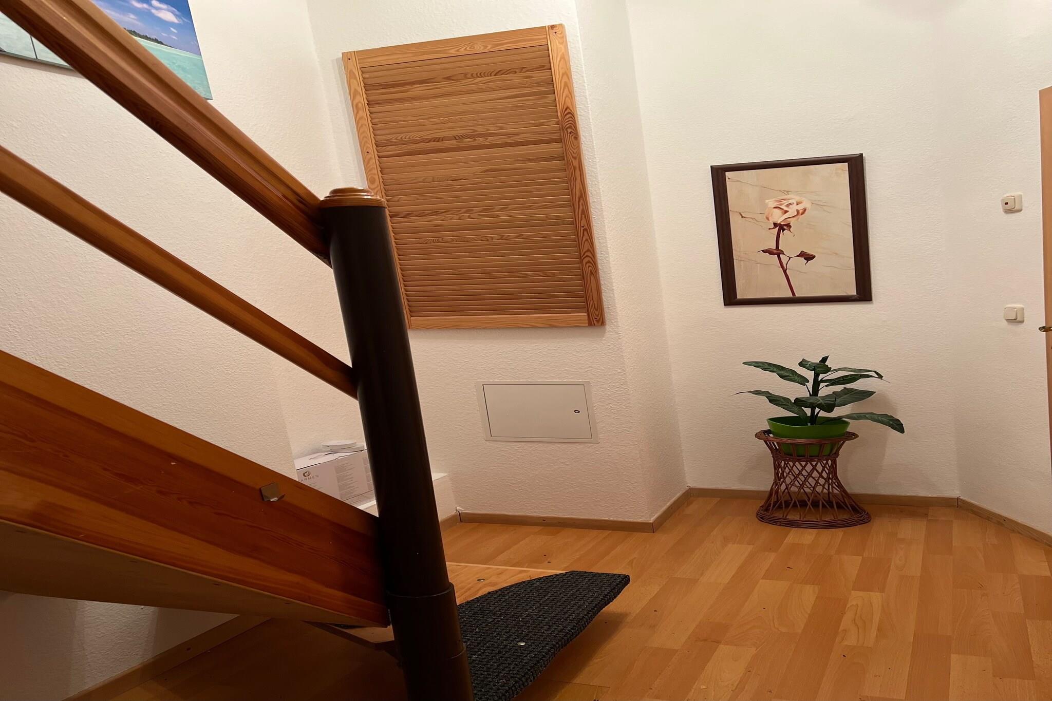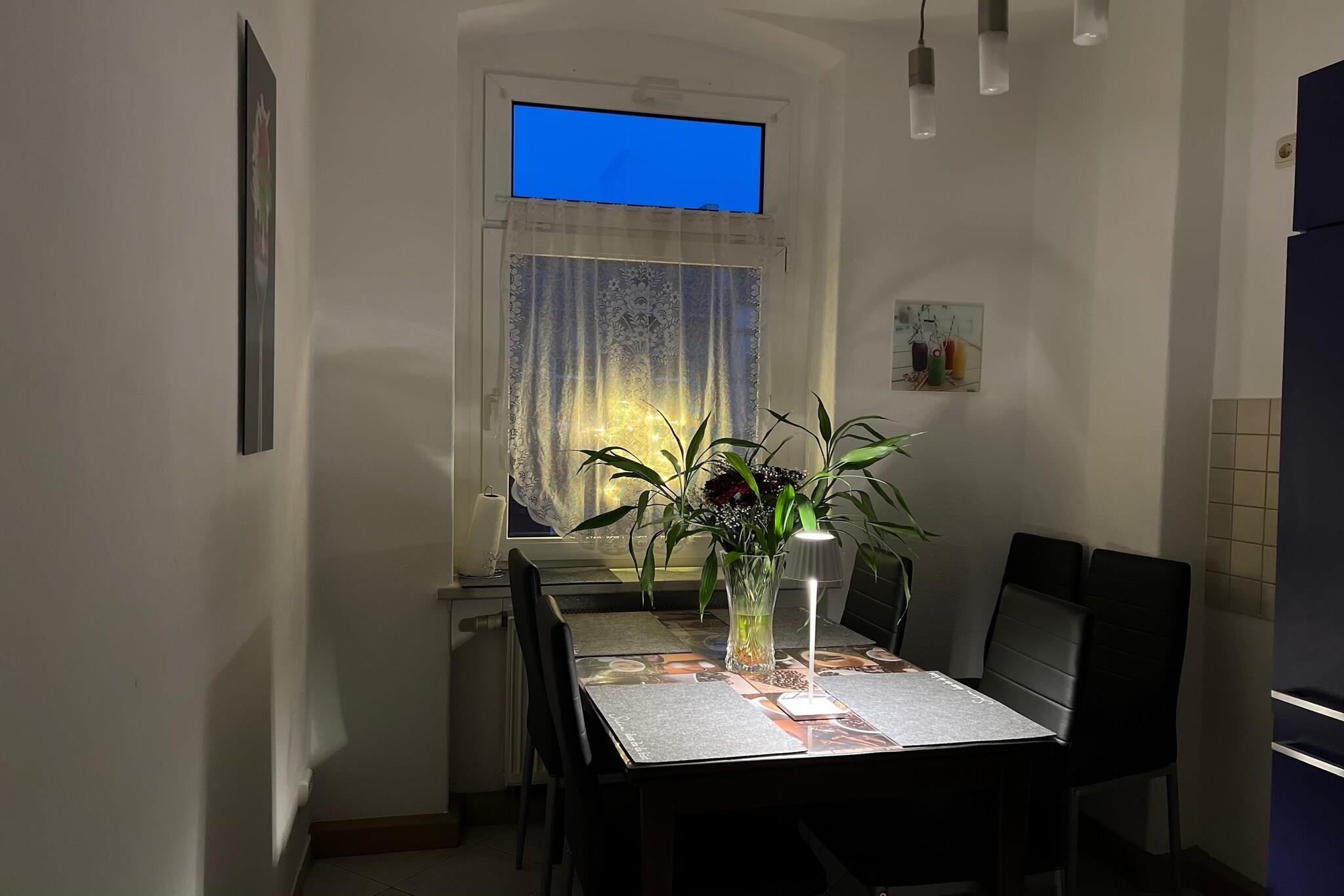 Beliggende på tredje sal i en stille bygning i Zwickau tilbyder denne lejlighed på flere niveauer et afslappet ophold for familier eller små grupper. Den hyggelige stue har et fladskærms-satellit-tv og opholdsområde, mens det veludstyrede køkken omfatter et 4-plade komfur, ovn, mikroovn, køleskab med fryser, kedel, brødrister, emhætte og filterkaffemaskine – fantastisk til afslappede måltider i. Det moderne badeværelse har badekar, bruser, håndvask, toilet og hårtørrer. Ovenpå på loftet finder gæsterne tre lyse soveværelser: to med dobbeltsenge og et med en enkeltseng - perfekt til par, børn eller solorejsende. Central gasvarme sikrer komfort overalt, og tankevækkende ekstraudstyr såsom insektnet, festspil, et strygejern og strygebræt er alle til rådighed. Udendørs kan du nyde et fælles haveområde, der er ideelt til afslapning efter byvandring. Med floden kun 700 m væk, bageri 300 m og offentlig transport og restauranter inden for gåafstand, blander denne beliggenhed byens tilgængelighed med kvarterets charme