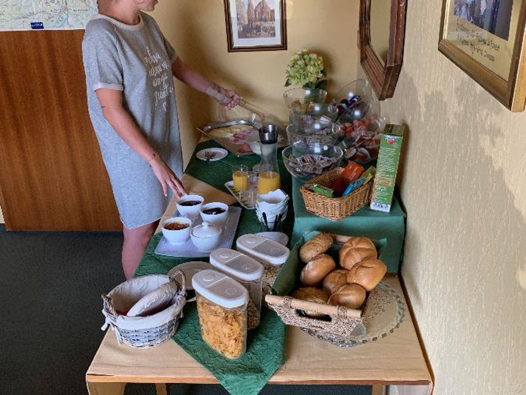 2 DZ mit je 2 Betten (Doppelbett) / alle Zimmer mit DU/WC/Waschbecken / TV und Balkon. Reichhaltiges Frühstücksbüffet für die 2 Zimmer in den Aufenthalts- bzw. Frühstückräumen.