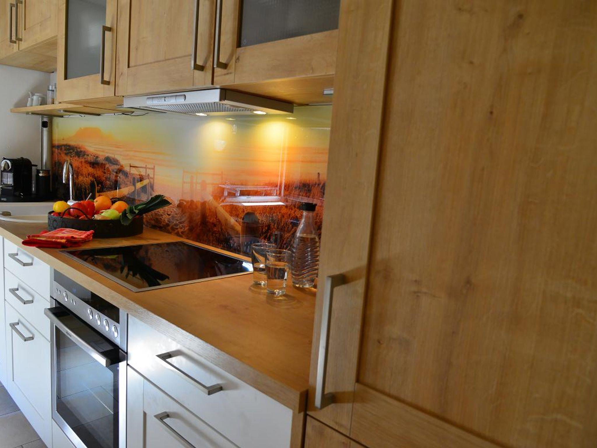 Im Wohnzimmer haben Sie eine große ausziehbare helle Ledercouch, einen großen Flachbildfernseher mit Heimkinosystem und einem Kaminofen mit Sichtscheibe für gemütliche und romantische Abende. Sie verfügen über ein separates geräumiges Esszimmer mit großem Tisch zum gemeinsamen Speisen und für schöne gemeinsame Spieleabende. In Ihrem großen Badezimmer mit Glasdusche, einer Whirlpool-Badewanne und WC wird der Start in den Tag angenehm beginnen. Praktisch ist das zusätzliche WC. In Ihren beiden geräumigen Schlafzimmern befinden sich hochwertige Boxspringbetten für erstklassigen Schlafkomfort. In der erstklassig ausgestatteten Küche finden Sie eine große Kühl-/Gefrierkombination, einen Geschirrspüler, einen Backofen mit Induktion-Ceran-Kochfeld, Dunstabzug, Kaffeemaschine und eine Nespresso- Kaffeemaschine mit Milchaufschäumer. Hier wird das Kochen zum Kinderspiel.