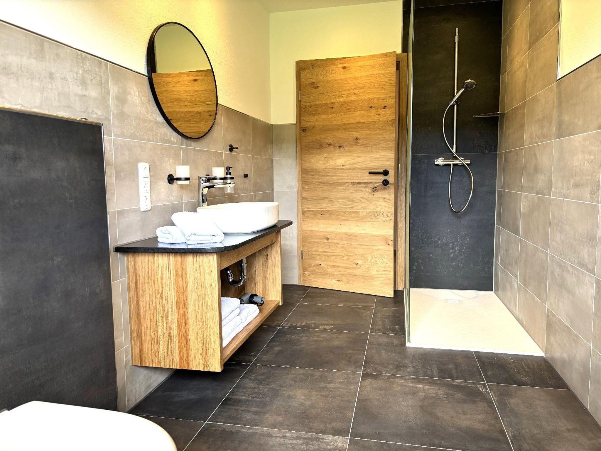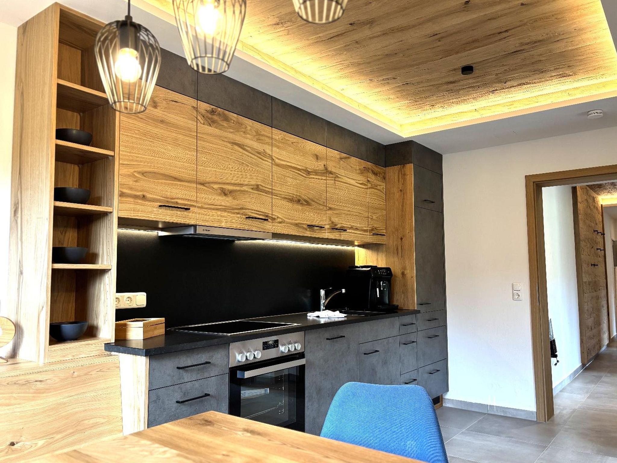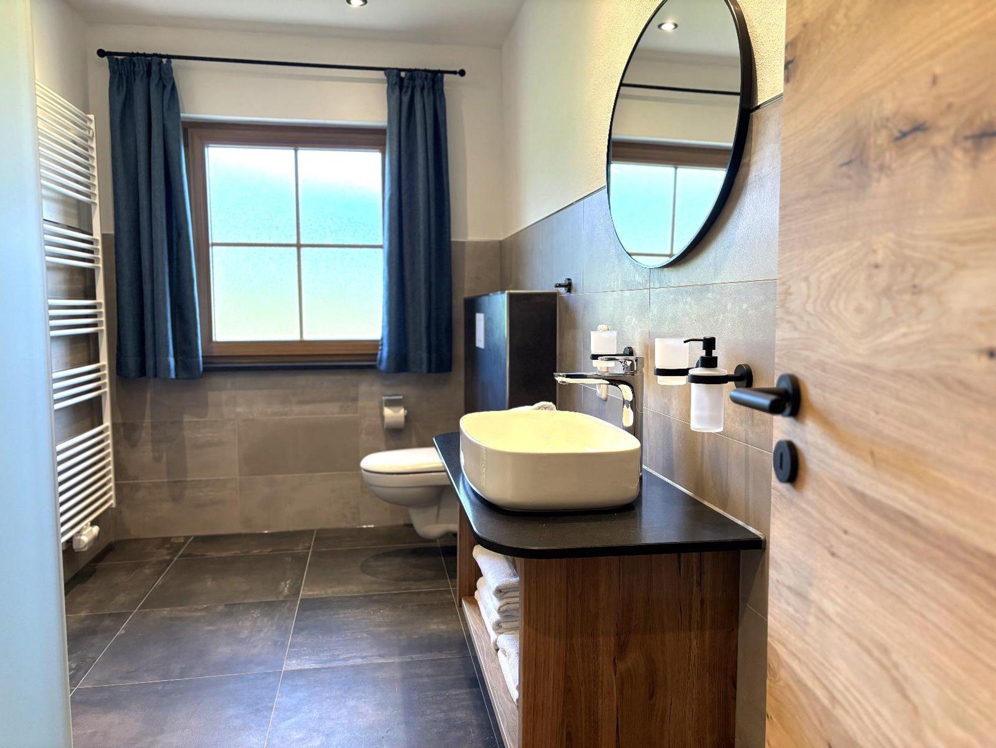 Unsere ebenerdige, sonnige Ferienwohnung bietet auf ca. 80 m² Platz für bis zu 5 Personen und ist ideal für Gäste, die ihren Urlaub gerne viel im Freien auf der Terrasse verbringen. Die große Südterrasse ist mit eigenen Gartenmöbeln wie Tisch, Bank, Sonnenschirm, Liegestühlen und Wäscheständer sowie einem Weber-Elektrogrill ausgestattet und bietet einen herrlichen Blick auf Wald und Wiesen. Die Wohnung verfügt über zwei Schlafzimmer mit Holzfußboden, darunter ein Schlafzimmer mit Doppelbett, Flachbild-SAT-TV und Safe sowie ein Schlafzimmer mit zwei Einzelbetten. Auf Wunsch stellen wir Ihnen gerne ein Zustellbett, ein Babyreisebett inklusive bezogenem Bettzeug, einen Hochstuhl oder einen Rausfallschutz zur Verfügung. Das große Badezimmer ist mit Dusche, WC, Waschbecken, Handtüchern und Föhn ausgestattet. Bettwäsche, Handtücher und Geschirrtücher sind inklusive. Das gemütliche Wohnzimmer mit Holzfußboden bietet eine kuschelige Eckcouch, Tisch und Wohnwand, Flachbild-SAT-TV, Radio sowie WLAN. Die separate Küche mit Eckbank und Holztisch verfügt über eine sehr gut ausgestattete Küchenzeile mit Geschirrspüler, Herd mit Cerankochfeld und Backofen, Kühlschrank mit Gefrierschrank, Wasserkocher, Toaster, Kaffeemaschine, Dolce-Gusto-Maschine und Kaffeevollautomat, ausreichend Geschirr sowie einer kleinen Kaffee- und Teeauswahl. Ein Parkplatz befindet sich direkt am Haus, außerdem stehen Abstellmöglichkeiten für Fahrräder und Ski zur Verfügung. Für einen entspannten Start in den Tag bieten wir liebevoll zusammengestellte Frühstückskörbe, Frühstück in unserer nahegelegenen Pension oder einen bequemen Semmel-Service an. Ihre Kinder finden viel Spaß in unserer Spielscheune mit Kinderspielparadies. Unser Wellnessbereich erhält derzeit ein neues Make-over; ab Juni erwarten Sie eine finnische Sauna, ein Jacuzzi für bis zu vier Personen sowie Schwebeliegen. Nach Eintrag in die Belegungsliste steht Ihnen der Wellnessbereich stundenweise exklusiv gegen eine kleine Gebühr zur Verfügung. Bitte beachten Sie, dass Onlinebuchungen Gebühren enthalten und in der Ferienwohnung Leithenwald Haustiere nicht erlaubt sind.