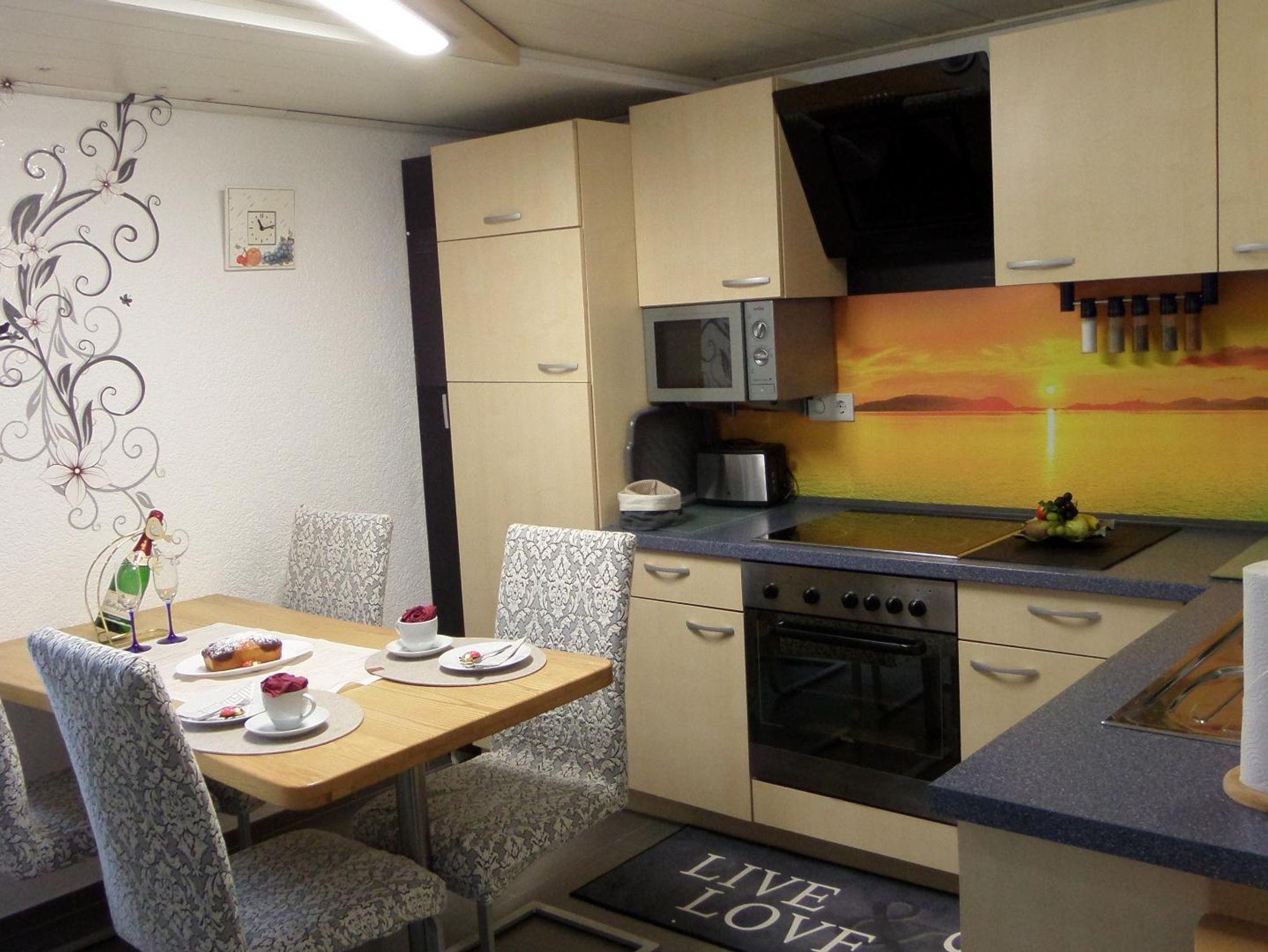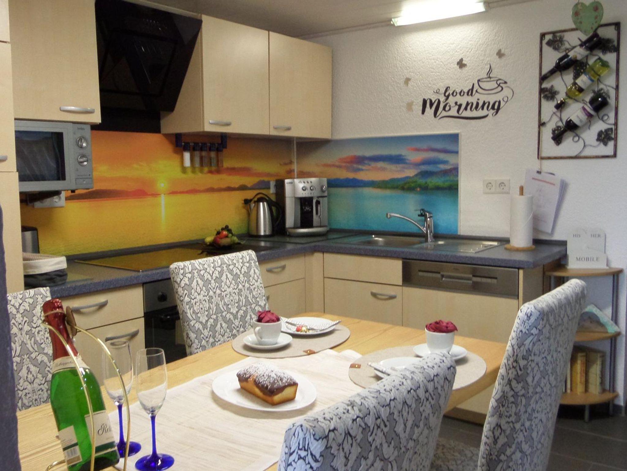Die Ferienwohnung 68 qm , Terasse , 1- 4 Personen plus Kinderbett.
