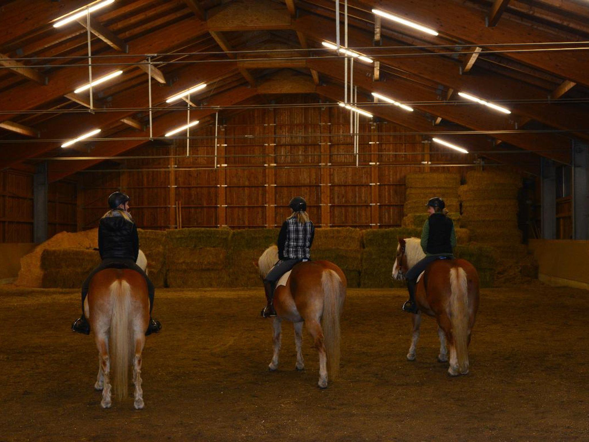 Sie wohnen auf einem Biobauernhof mit Kühen und Kälbern.Reiterferien für die ganze Familie. In unserer Reithalle bieten wir Reitunterricht für groß oder klein. Für die Kleinsten finden sie eine Heuburg Spielscheune Spielplatz und Spielzimmer mit einem großem Kettcar- Fuhrpark. Für die Großen eine 100qm große Saunalandschaft mit zwei Saunen, Infrarotkabine, Wintergarten und Whirlpool. In den urgemütlichen vom Schreiner gefertigten Ferienwohnungen werden Sie sich bestimmt wohl fühlen.