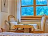 Wohnküche m. Couch, Schlafzimmer, großer überdachter Balkon mit Talblick.