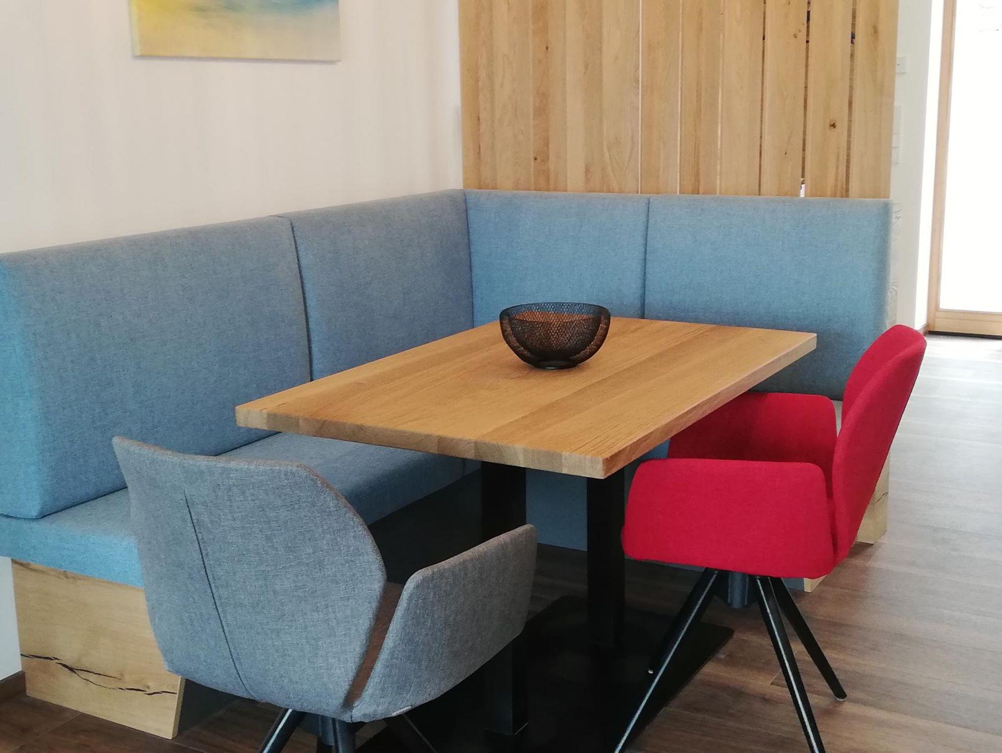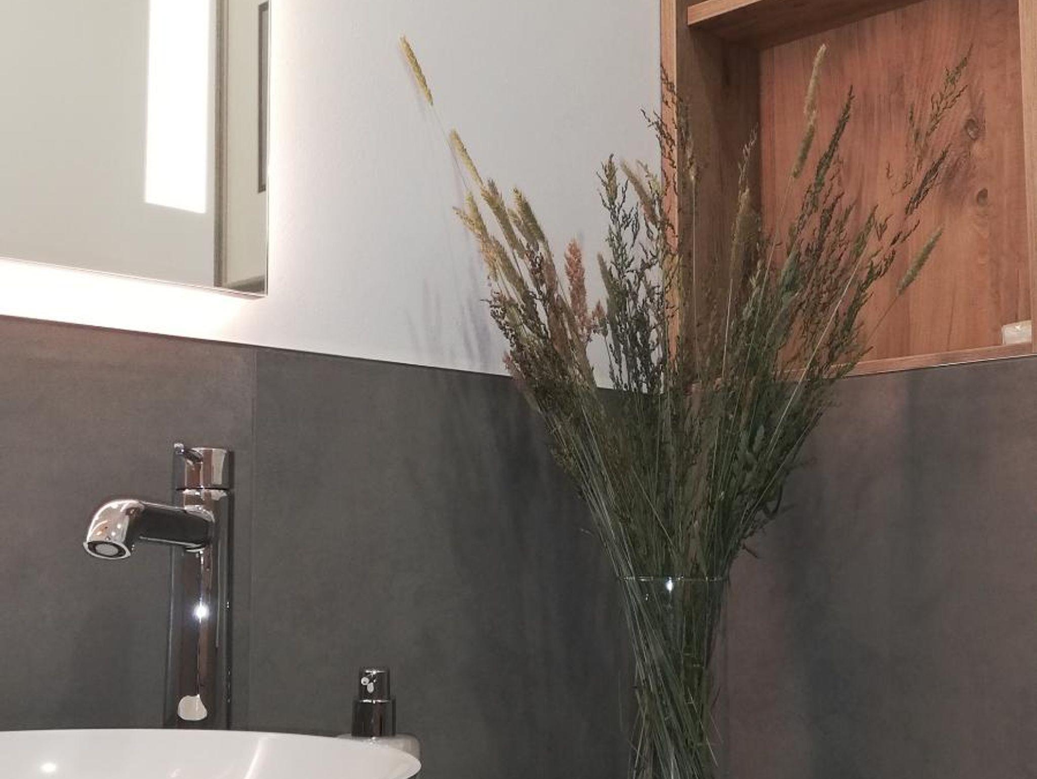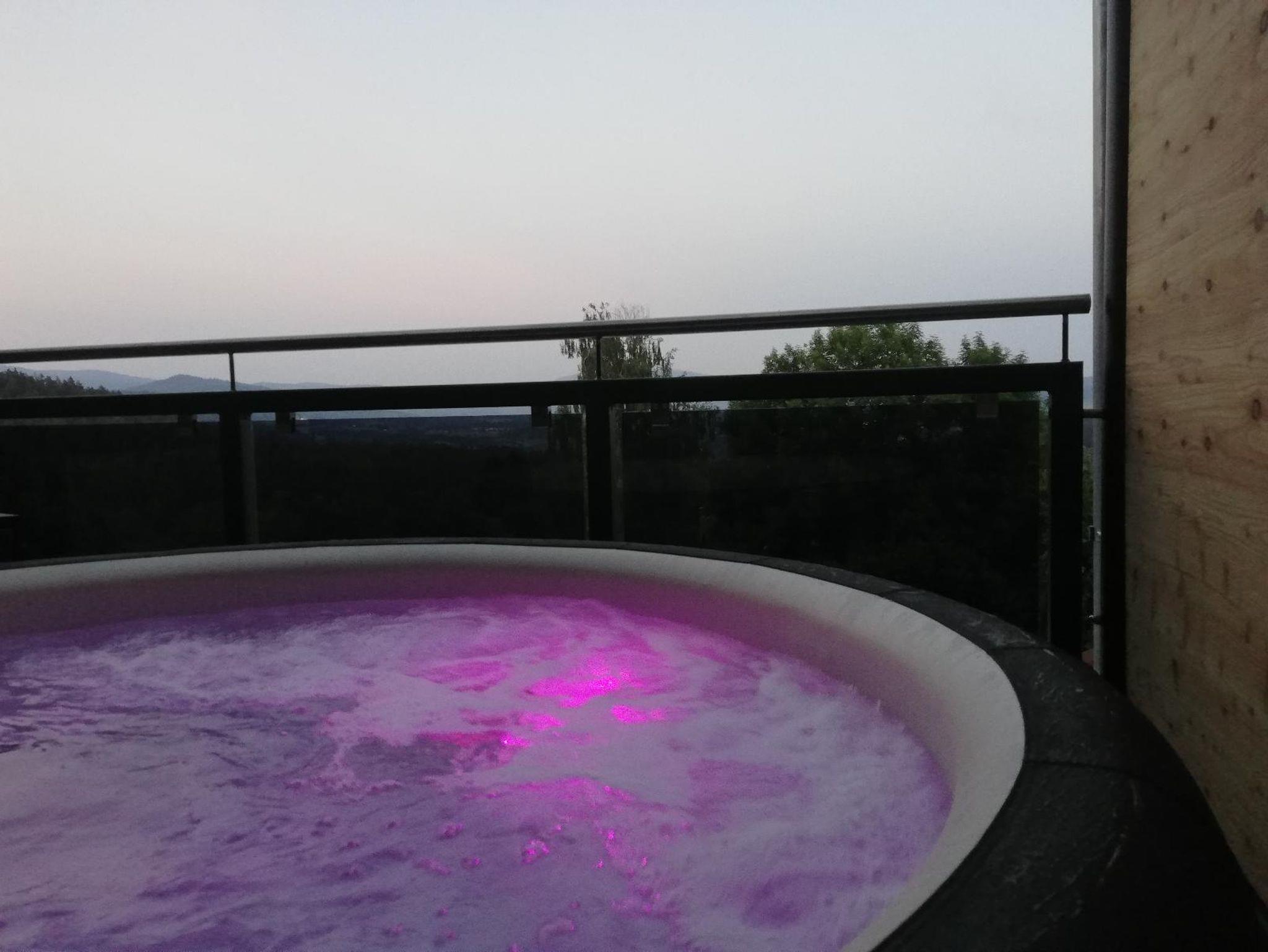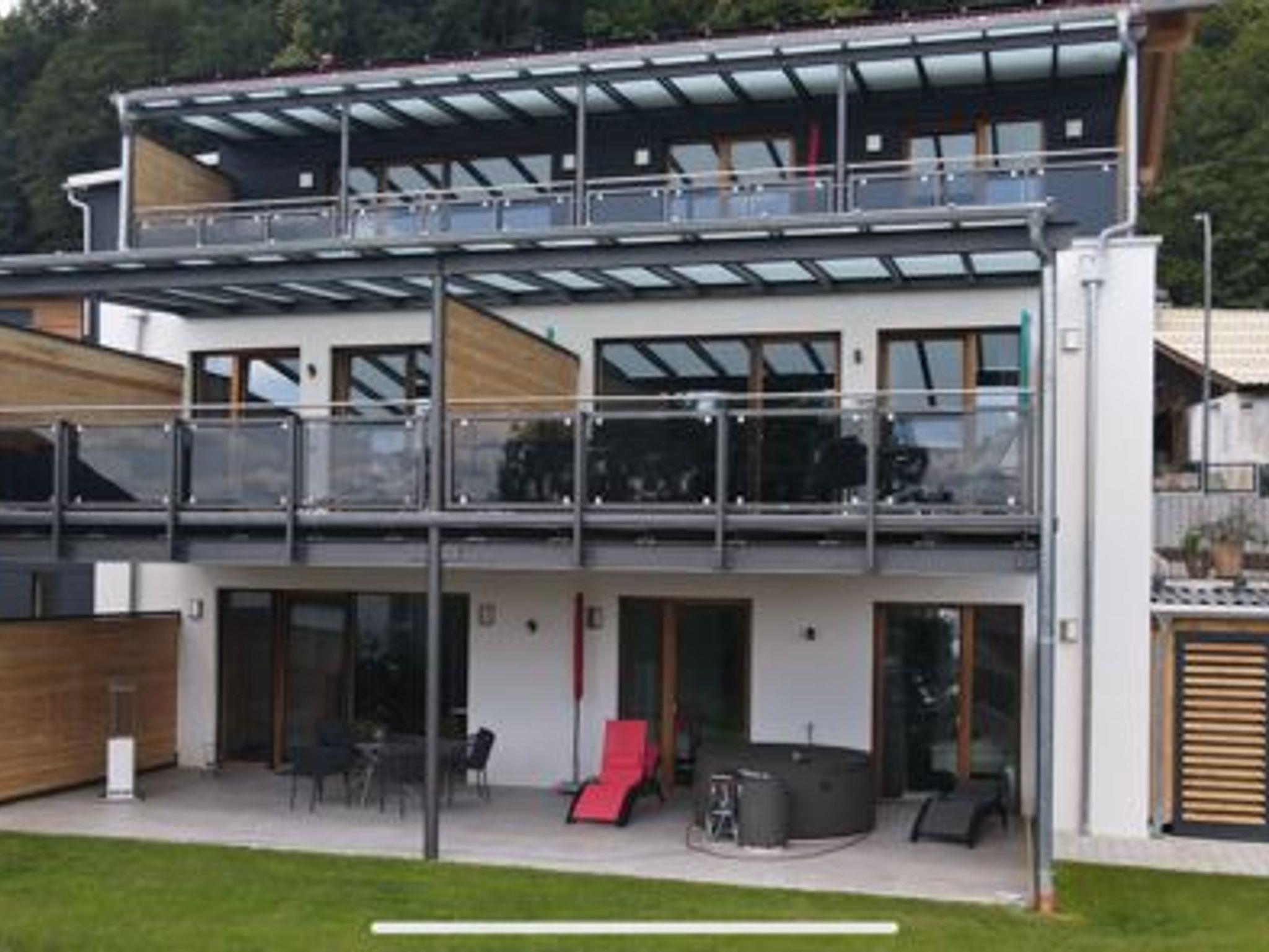 Im Eingangsbereich befindet sich die Garderobe mit Stauraum sowie die Toilette mit Fenster. Der großzügige Wohnbereich besteht aus einer gut ausgestatteten Küche mit Weinkühlschränken, Kaffeevollautomat, Mikrowelle usw., einem Essplatz, einer gemütlichen Couchecke und einem 55 Zoll Smart TV-Gerät. Von hier aus gelangt man in das Schlafzimmer mit hochwertigem Doppelbett und Smart TV. Nebenan liegt das großzügige Badezimmer mit steuerbarer Wellness-Ambiente-Beleuchtung, Einbauradio mit Bluetooth-Funktion, freistehender Badewanne, Walk-in-Regendusche und finnischer Sauna mit Infrarot-Bereich. Ein besonderes Highlight ist der 25 qm große überdachte Balkon, den man über Wohn- und Schlafzimmer betreten kann und der mit Sonnenliegen, Sitzgarnitur und einem Whirlpool ausgestattet ist. Von hier aus haben Sie eine traumhafte Aussicht auf die grandiose Landschaft.