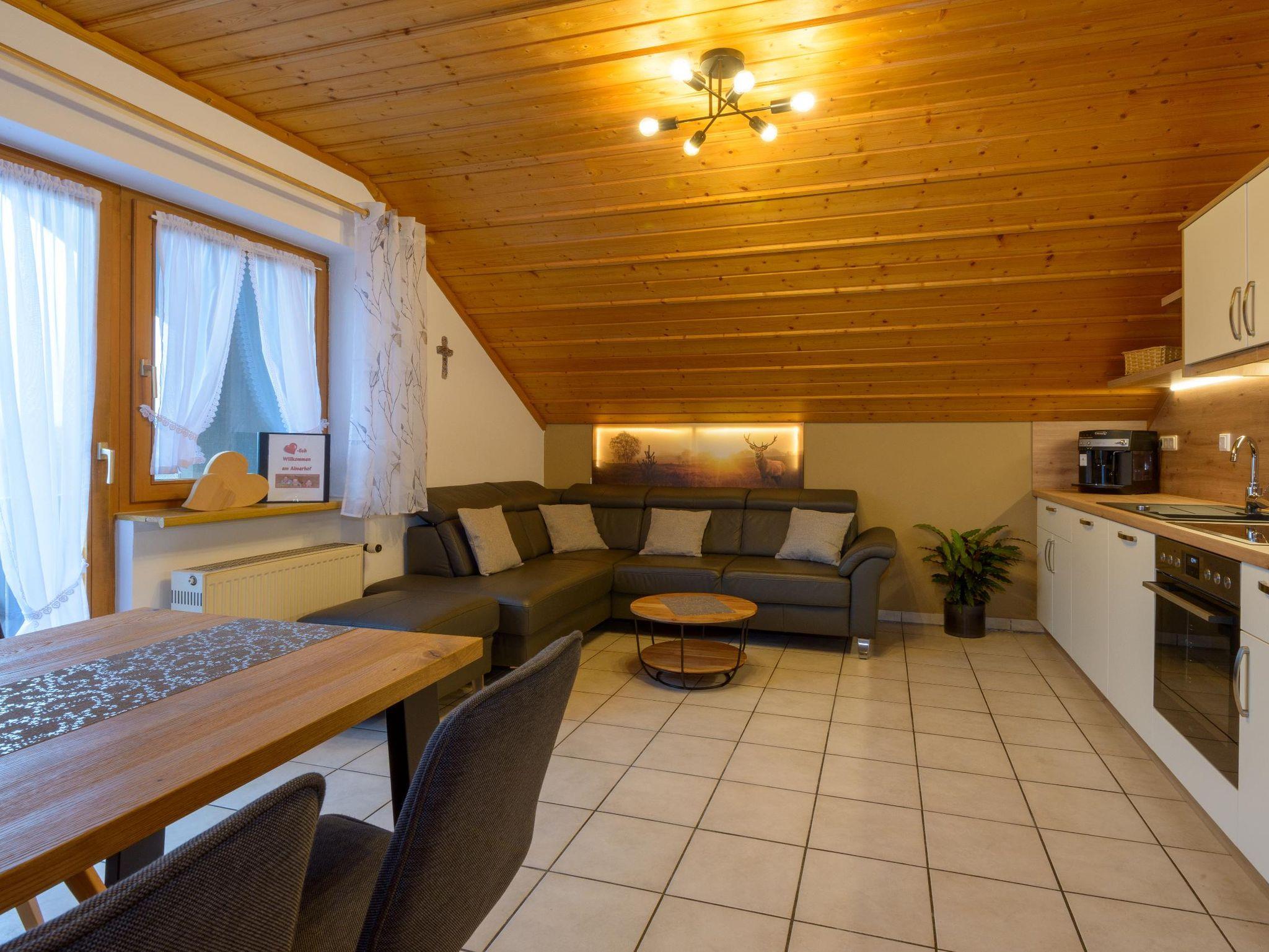 Unsere 4-Sterne-Ferienwohnung Birke besitzt eine Wohnfläche von 70 qm. Die Einrichtung ist im typisch bayerischen Landhausstil und lädt zum Wohlfühlen ein.