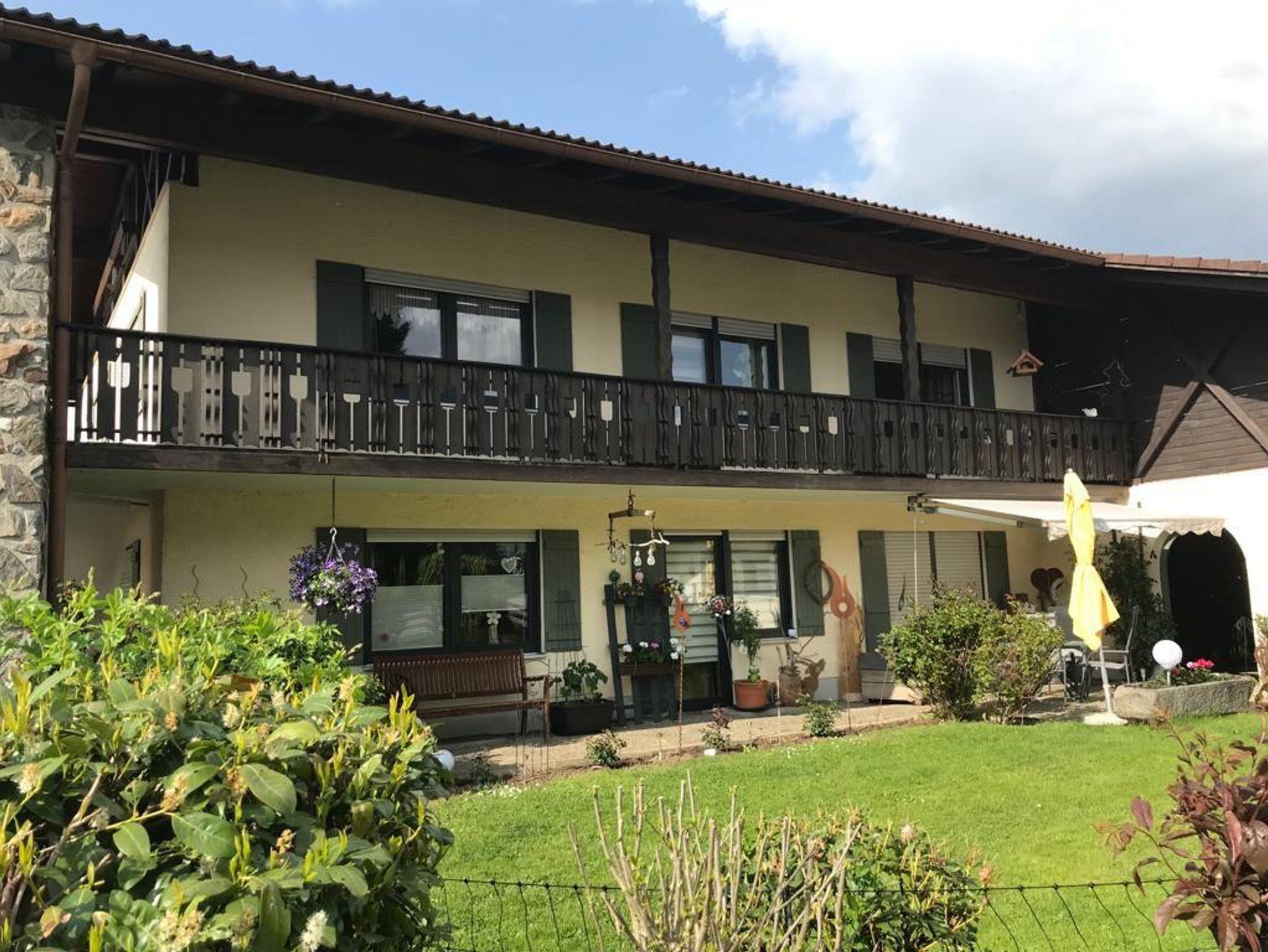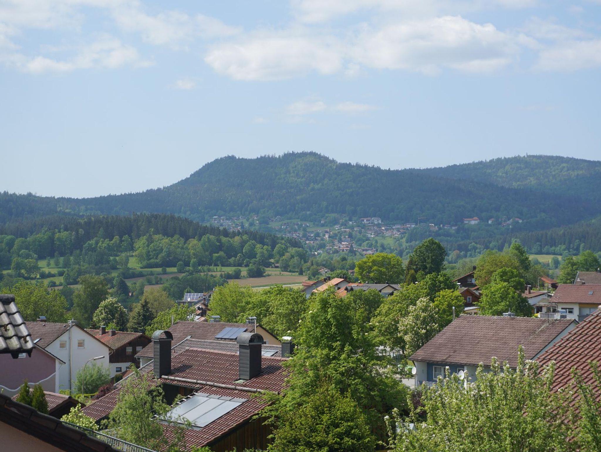 Durch die erhöhte Lage der Wohnung genießen Sie auf dem eigenen großzügigen Balkon einen herrlichen Ausblick über Zwiesel und die umliegenden Berge.
