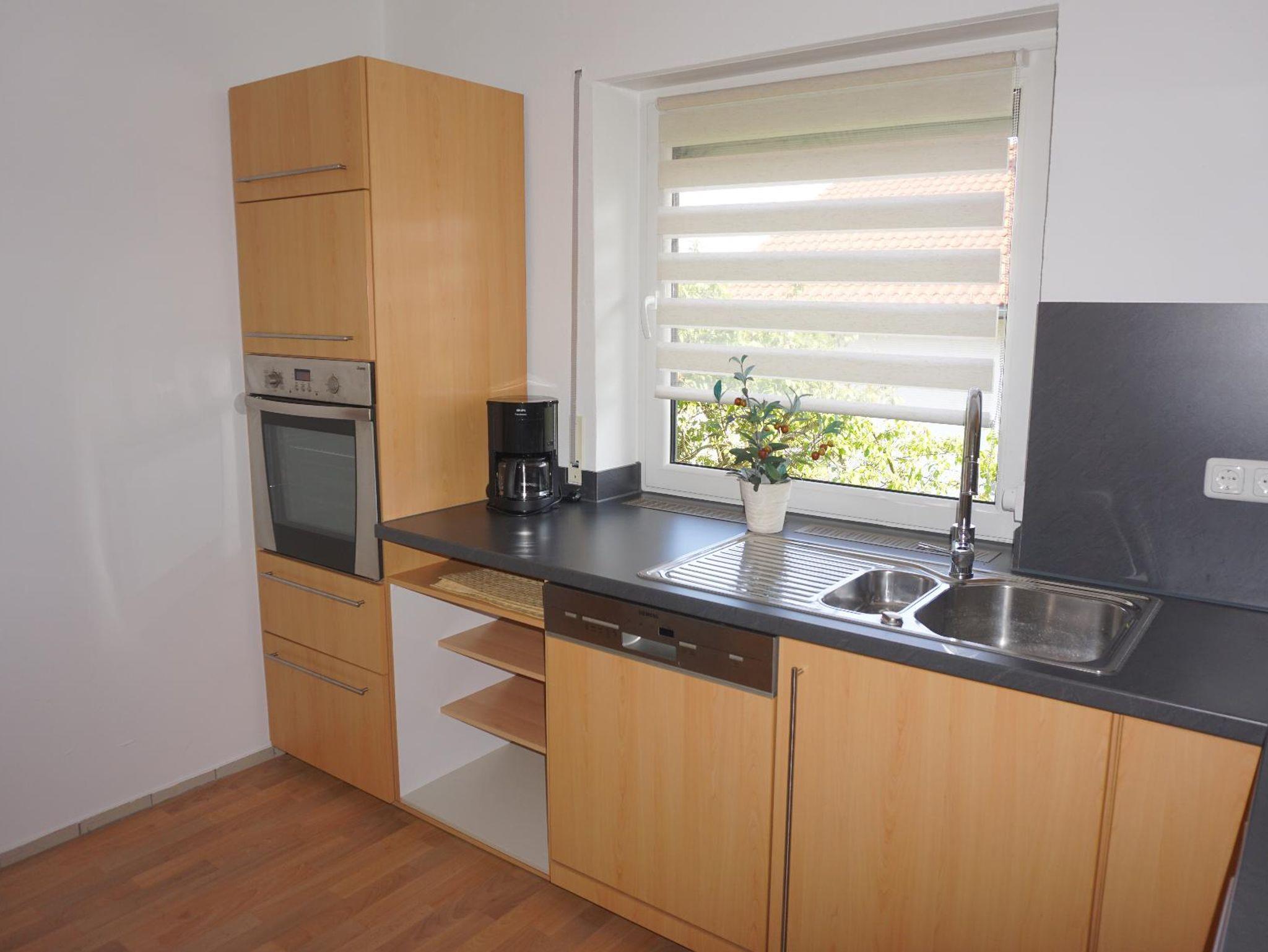 Die helle, komfortable Ferienwohnung teilt sich in 5 Zimmer (Wohnzimmer, Esszimmer, Küche, 2 Schlafzimmer mit Balkonzugang) auf. Der großzügige, überdachte Balkon (16 x 1,35m) lädt Relaxen ein (westliche und südliche Ausrichtung) und ist mit Möbeln ausgestattet.