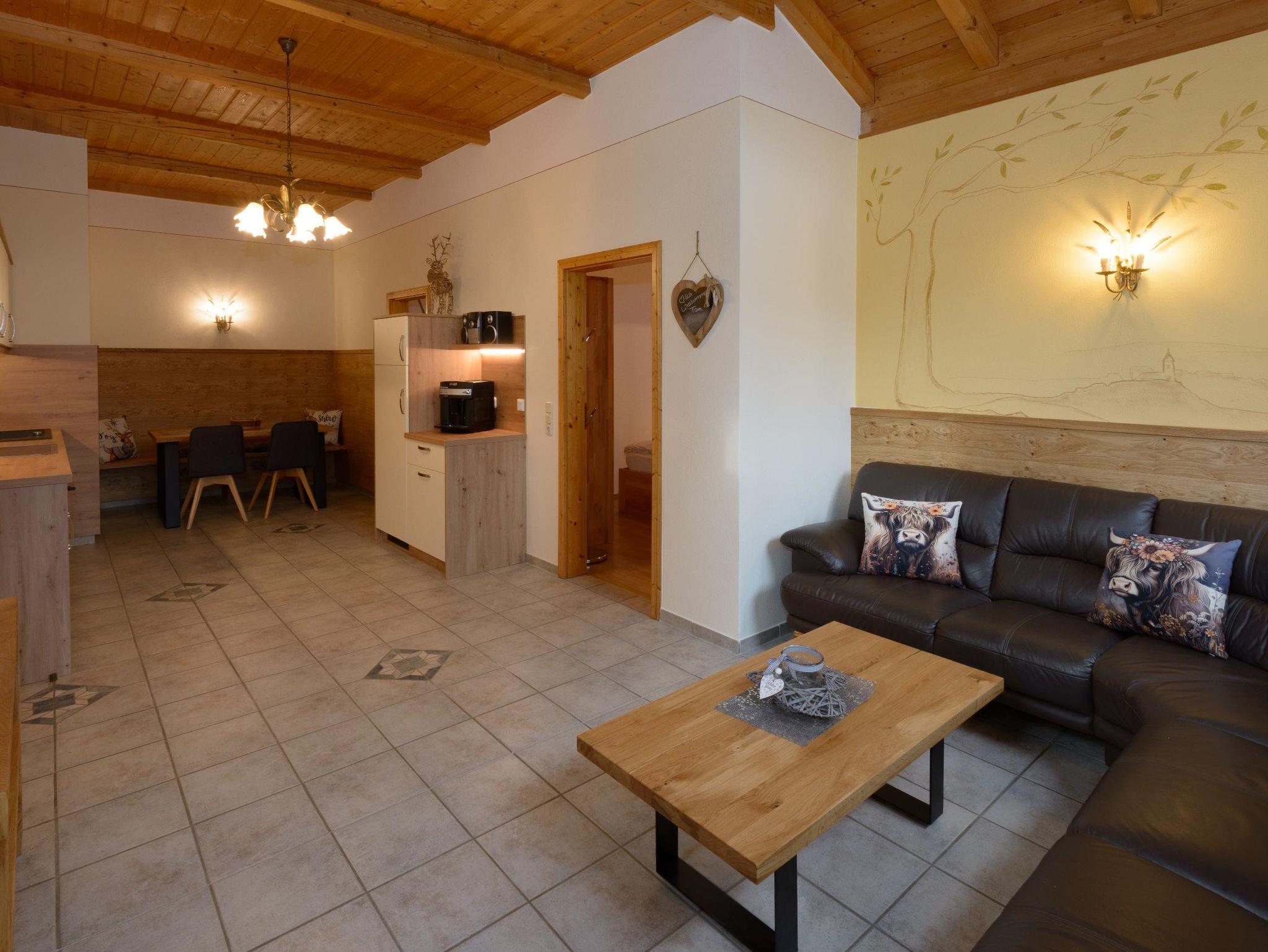 Unsere 4-Sterne-Ferienwohnung Tanne besitzt eine Wohnfläche von 70 qm. Die Einrichtung ist im typisch bayerischen Landhausstil und lädt zum Wohlfühlen ein.