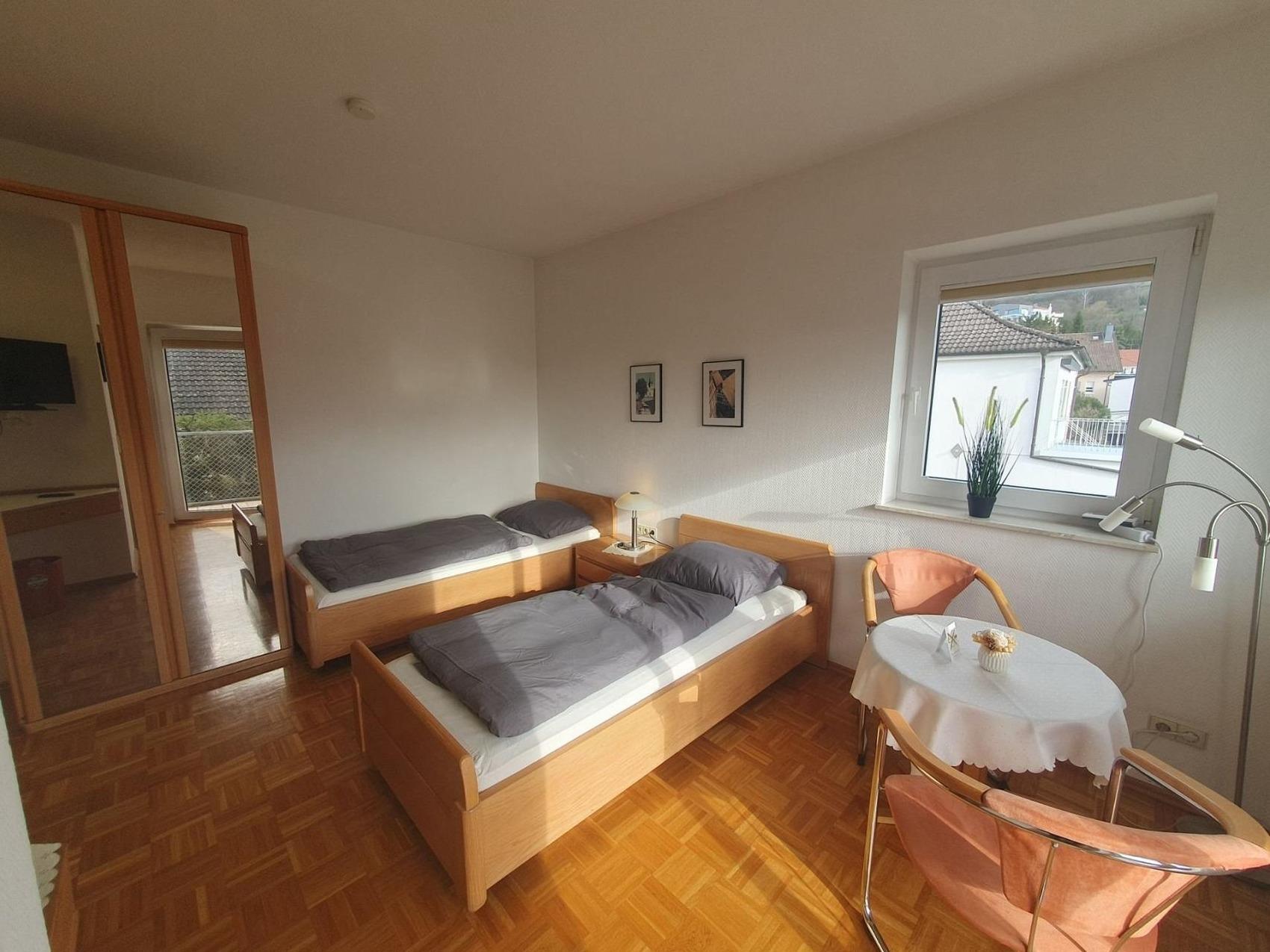 Bis zu 44 Personen buchbar! Apartment mit Balkon und zwei Einzelbetten, voll möbliert mit Bad, Miniküche (Kühlschrank, Doppelherd, Spüle, Besteck, Teller, Tassen, Wasserkoscher...) und TV.Kontaktloser Zugang (ohne Personen) über zwei Codes: Sie erhalten je ein Code für den Hauseingang und einen Code für den Zugang zum Apartment.Sie können auch mehrere Apartments anmieten... bis zu 42 PersonenZwingenberg hohe Lebensqualität, starke Betriebe und ideale Voraussetzungen spricht für unternehmerisches Wachstum in der Wirtschaftsregion Bergstraße: Die älteste südhessische Bergstraßen-Kommune profitiert von ihrer zentralen Lage inmitten der Metropolregionen Frankfurt/Rhein-Main und Rhein-Neckar. Von Zwingenberg aus gelangt man schnell an sein Ziel! An die Autobahn A5 besteht eine direkte Anbindung, aber auch die A67 und die Bundesstraßen B3, B47 und B460 sind schnell erreichbar. Besonders die Nähe zum Flughafen Frankfurt ist ein unschlagbarer Standortvorteil.Auch leben lässt es sich hier ganz ausgezeichnet: Die historische Altstadt mit zahlreichen Fachwerkhäusern und malerischen Ausblicken macht die Zwingenberg zu einem sehr beliebten Wohnstandort.Der Standort Zwingenberg ist von folgenden Orten entfernt:vom Hauptbahnhof Darmstadt nur 18 Min. (22 km)vom Frankfurter Flughafen ca. 29 Min. (44 km)von Heidelberg knappe 32 Min; (42 km) vom Mannheim 39 km (41 km)