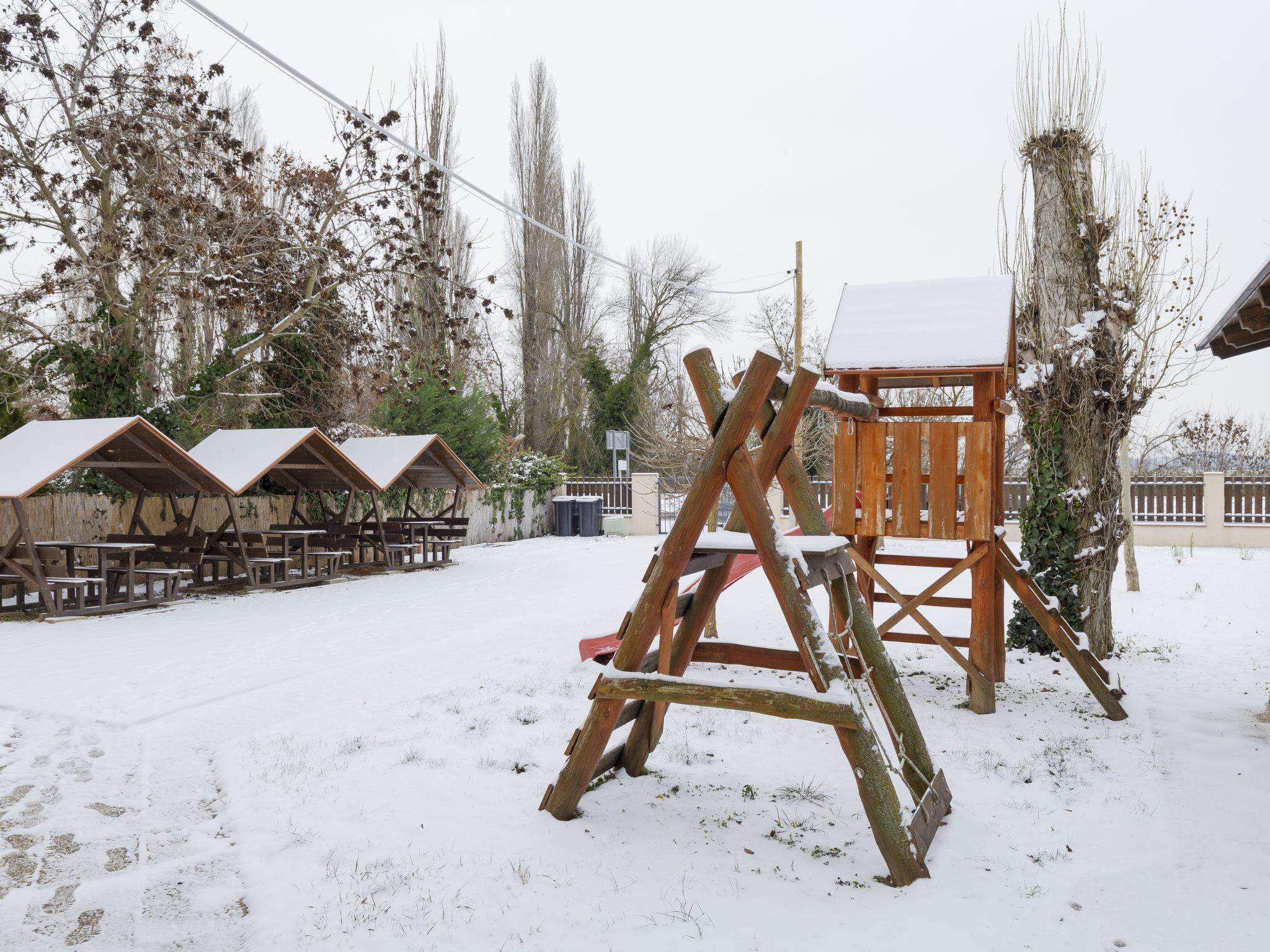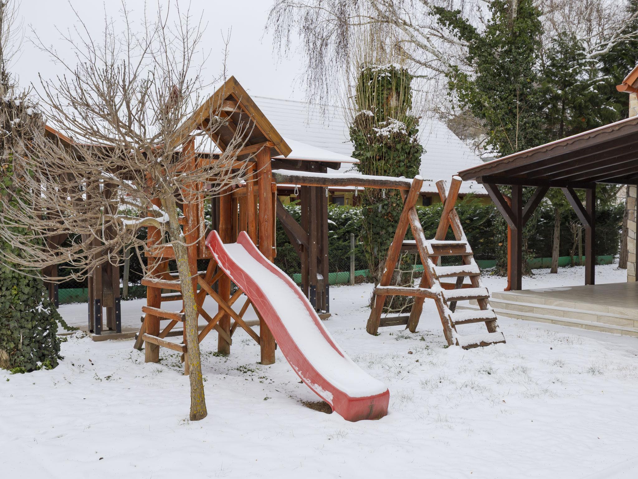 Badacsonyörs 30 km from Keszthely: Cosy, comfortable 2-family house, 2 storeys. 2 apartments in the property. In a sunny position residential area (villas), 100 m from the lake, 2 km from the beach. For shared use: property (fenced). Pergola, garden furniture, fireplace, children's playground (slide, swing). In the house: WiFi, central heating system, air conditioning. Grocery 3 km, supermarket 13 km, restaurant 160 m, bicycle rental 3 km, bus stop "Badacsonytomaj, camping" 550 m, railway station "Badacsonyörs, Badacsonytomaj" 1.6 km, thermal baths "Hévíz" 35 km. Tennis 4 km, riding stable 7 km, cycle lane 100 m. Nearby attractions: Folly Arboretum 550 m, Varga Winery 1 km, Tapolca Lake Cave Visitor Centre 13 km, Szigliget Castle 13 km, Tihany 32 km, Balatonfüred Aquapark 35 km. Hiking paths: Badacsony 5 km. The owner does not accept any youth groups. Please note: main road close by 30 m from the property. Railway line closeby 50 m from the property.