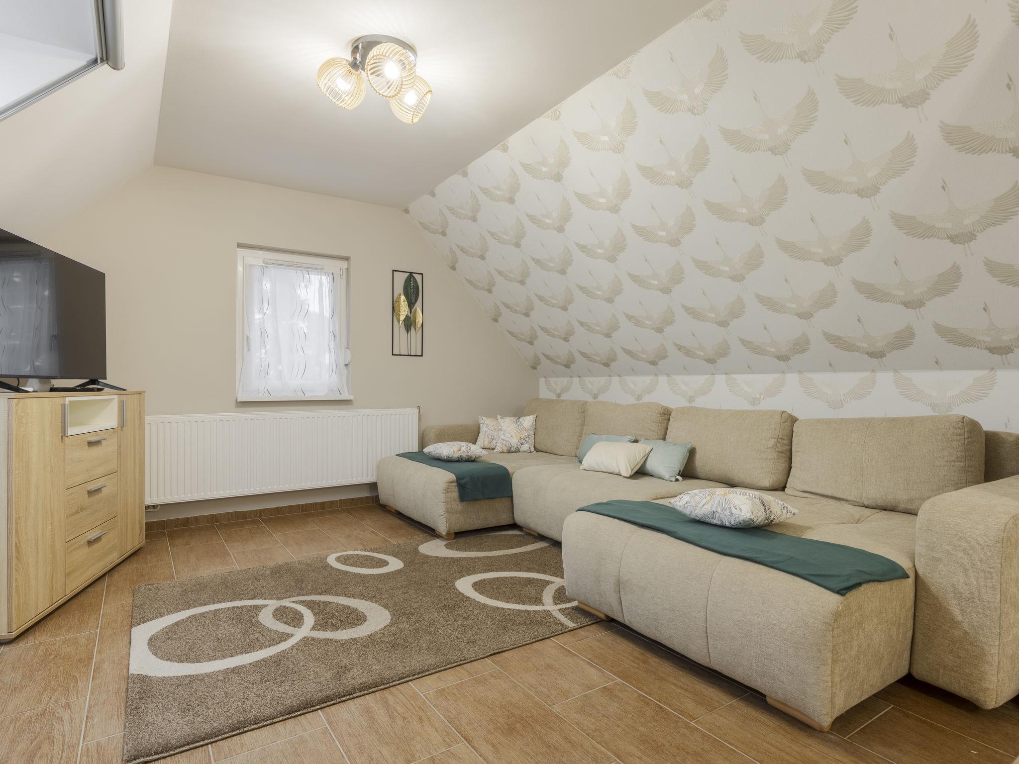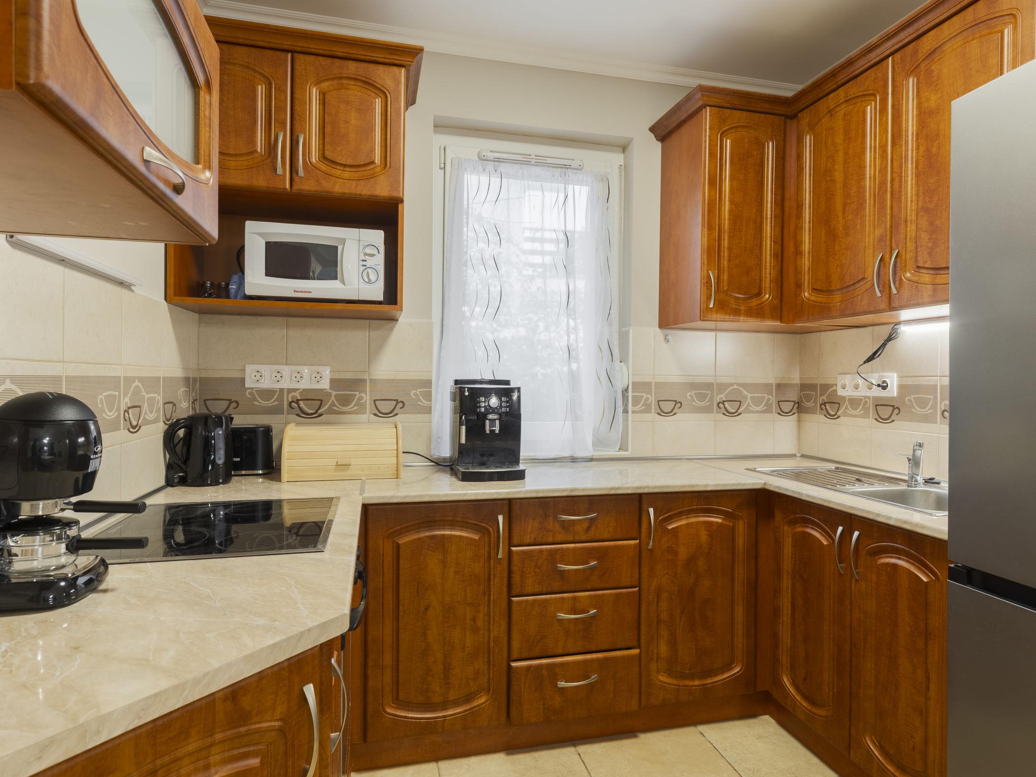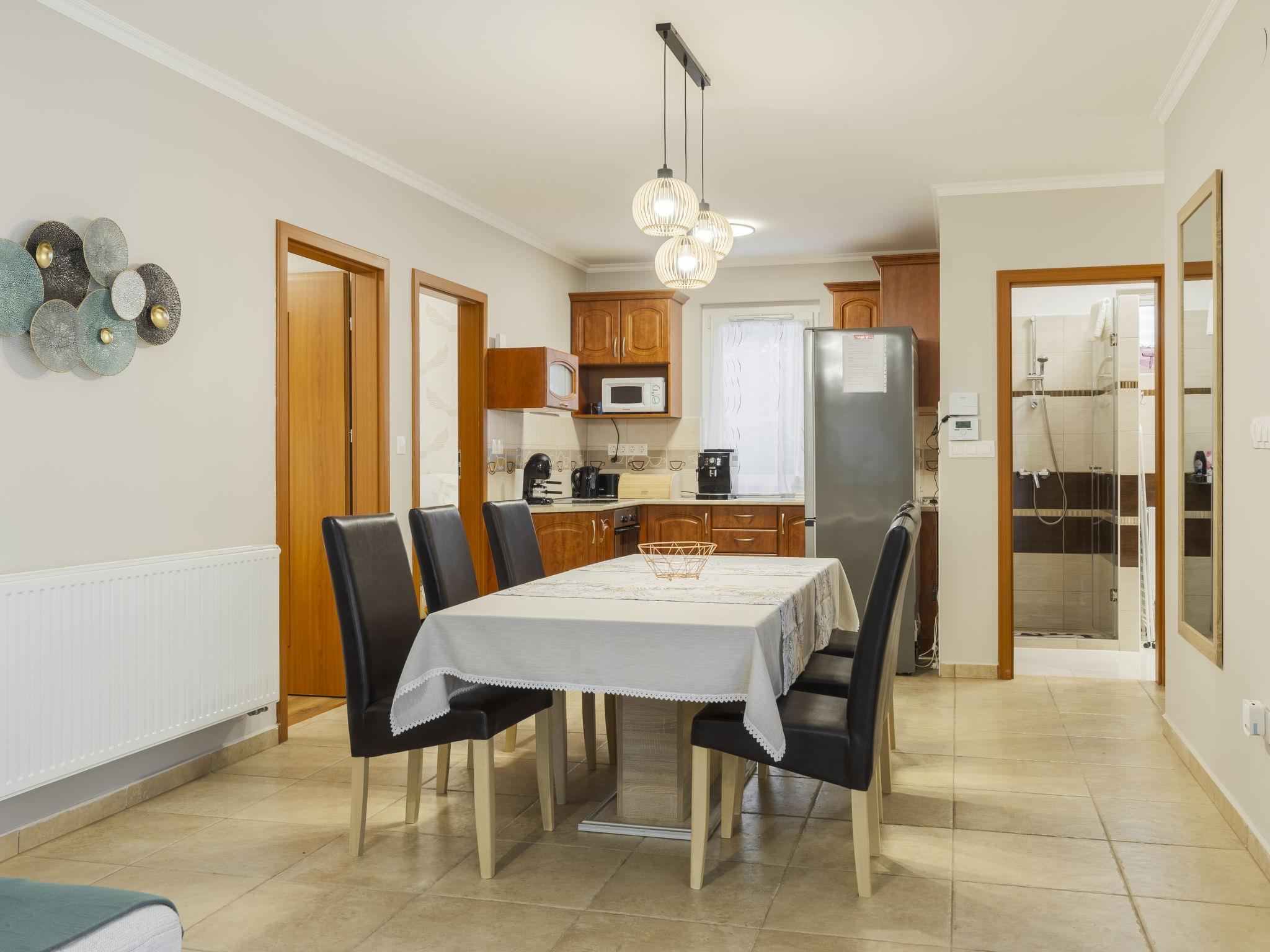 Badacsonyörs 30 km from Keszthely: Beautiful, comfortable 2-family house, 2 storeys. In a sunny position residential area (villas), 100 m from the lake, 2 km from the beach. Private: property (fenced). Pergola, terrace, garden furniture, fireplace, children's playground (slide, swing). In the house: WiFi, central heating system, air conditioning. Parking on the premises. Grocery 3 km, supermarket 13 km, restaurant 160 m, bicycle rental 3 km, bus stop "Badacsonytomaj, camping" 550 m, railway station "Badacsonyörs, Badacsonytomaj" 1.6 km, thermal baths "Hévíz" 35 km. Tennis 4 km, riding stable 7 km, cycle lane 100 m. Nearby attractions: Folly Arboretum 550 m, Varga Winery 1 km, Tapolca Lake Cave Visitor Centre 13 km, Szigliget Castle 13 km, Tihany 32 km, Balatonfüred Aquapark 35 km. Hiking paths: Badacsony 5 km. The owner does not accept any youth groups. Please note: main road close by 30 m from the property. Railway line closeby 50 m from the property.