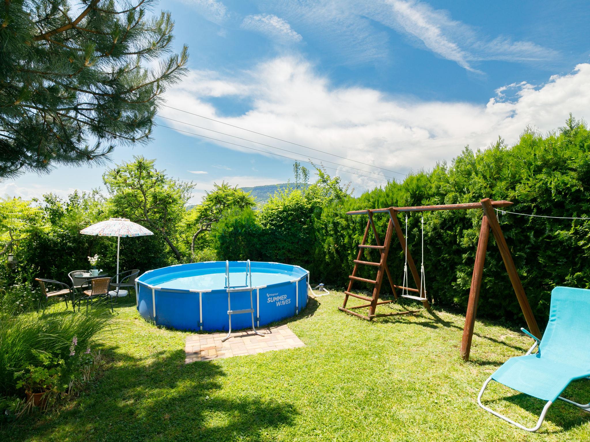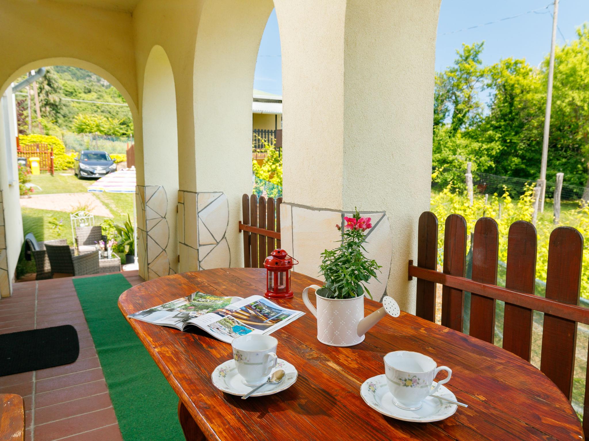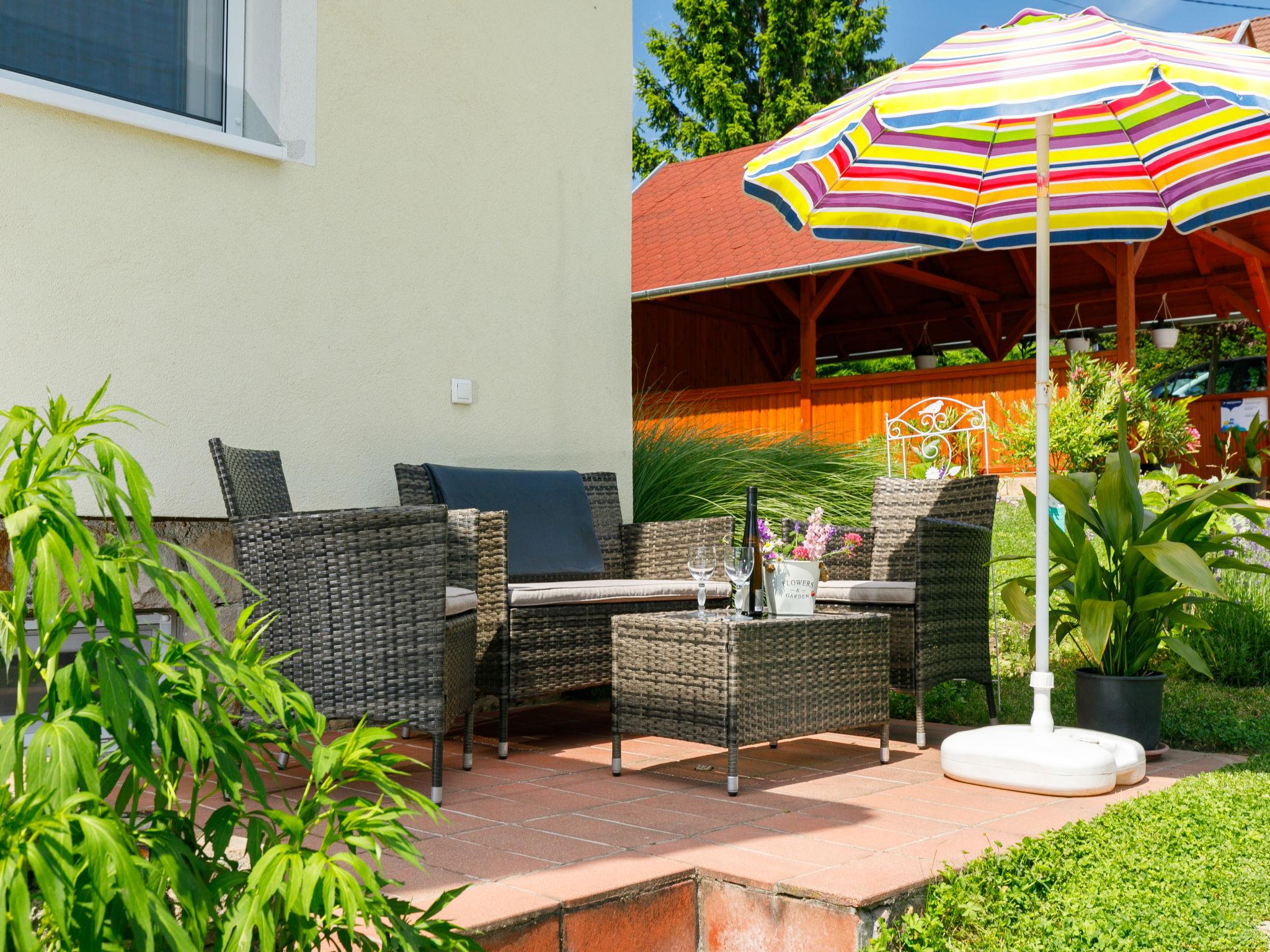 Badacsonytomaj 29 km from Keszthely: House "Toth", surrounded by vineyards. Above Badacsony, in the district of Badacsonyörs 2 km from the centre of Badacsonytomaj, 3 km from the centre of Badacsony, on a slope, in the residential district, 1 km from the lake, 2 km from the beach. For shared use: property (fenced) with trees, meadow. Private: garden with lawn, swimming pool (above ground) round (3,60 m diameter, depth 80 cm, seasonal availability: 16.May. - 12.Sep.). Children's playground (swing, sandbox). In the house: air conditioning. 500 m long narrow motor access. Parking (for 2 cars) on the premises. Grocery 2 km, supermarket 13 km, restaurant 500 m, bicycle rental 2 km, thermal baths "Hévíz" 35 km. Golf course (18 hole) 28 km, tennis 3 km, cycle lane 500 m, children's playground 1 km. Nearby attractions: Festetics Castle 29 km, Tihany 36 km, Balatonfüred Annagora Aquapark 36 km, Tapolca Lake Cave Visitor Centre 12 km, Szigliget Castle 12 km, Folly Arboretum 2 km. Please note: 1st floor is closed and not occupied. Owner lives in separate semi-detached house. The owner has a dog.