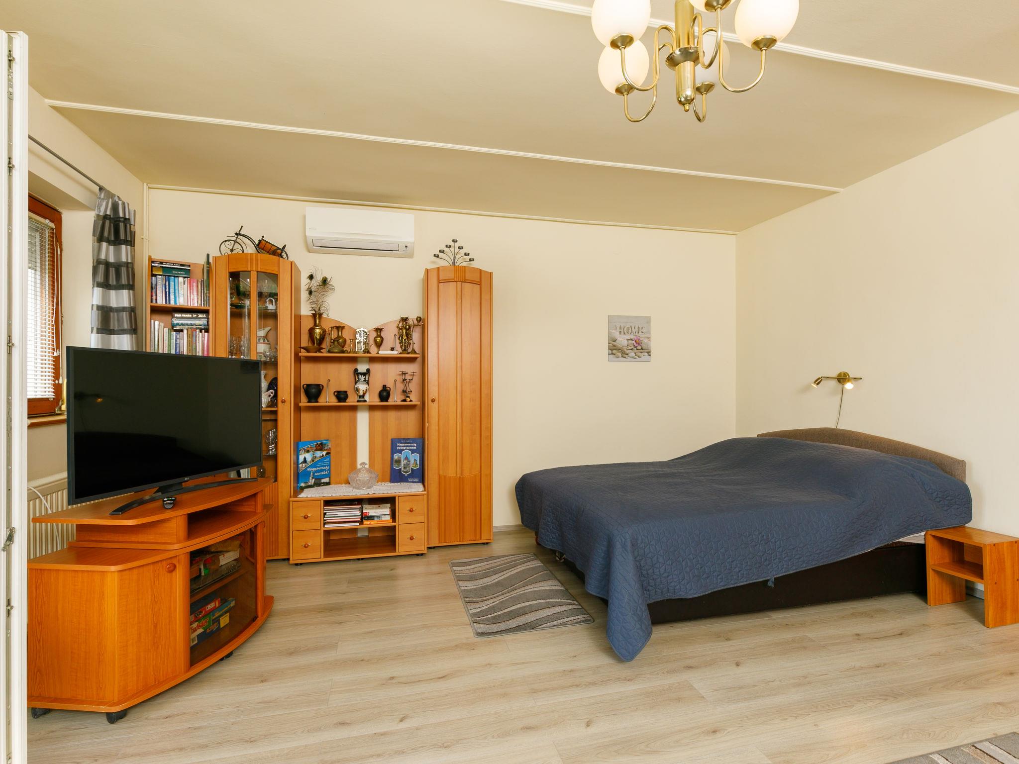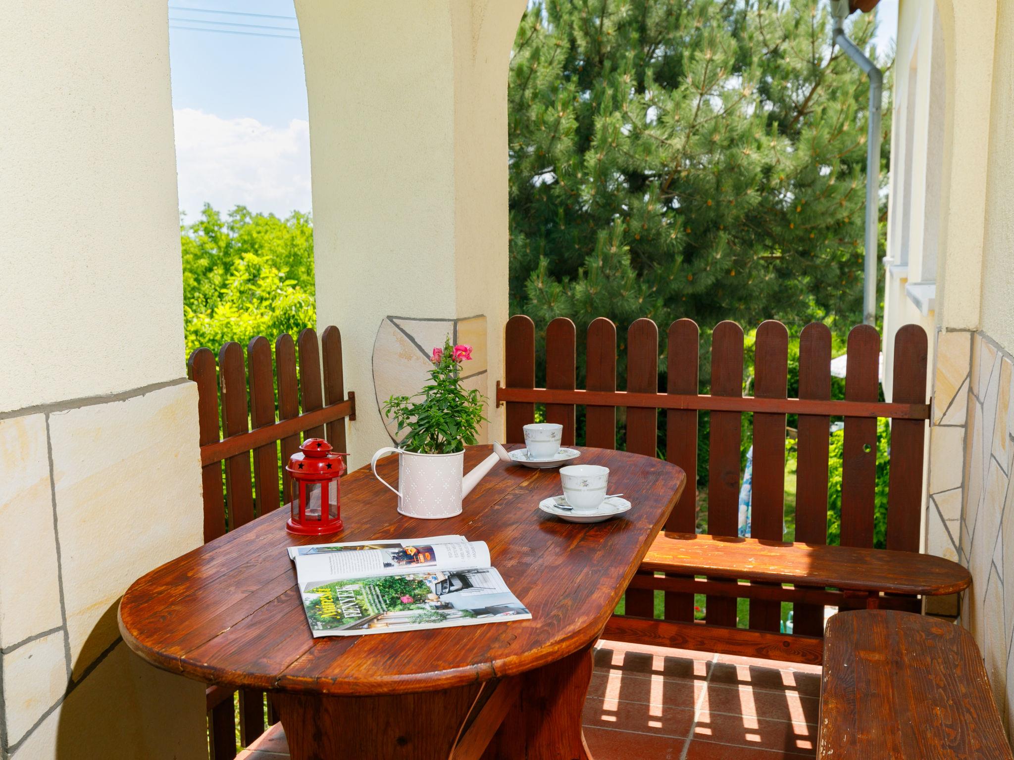 "Toth", 3-room house 100 m2, on the upper ground floor. Bright, simple furnishings: living/sleeping room with 1 french bed (160 cm, length 200 cm), cable TV and air conditioning. Exit to the balcony. 1 room with 2 beds (90 cm, length 200 cm). 1 room with 1 french bed (160 cm, length 200 cm). Entrance hall with dining table. Kitchen in the entrance (oven, dishwasher, 4 gas rings, toaster, kettle, microwave, freezer, electric coffee machine). Bathroom, sep. WC. Heating. Balcony, terrace. Terrace furniture, barbecue (portable), deck chairs (4). Beautiful view of the lake. Facilities: mosquito net, baby cot. Internet (WiFi, free). Please note: non-smoking house. MA19012953