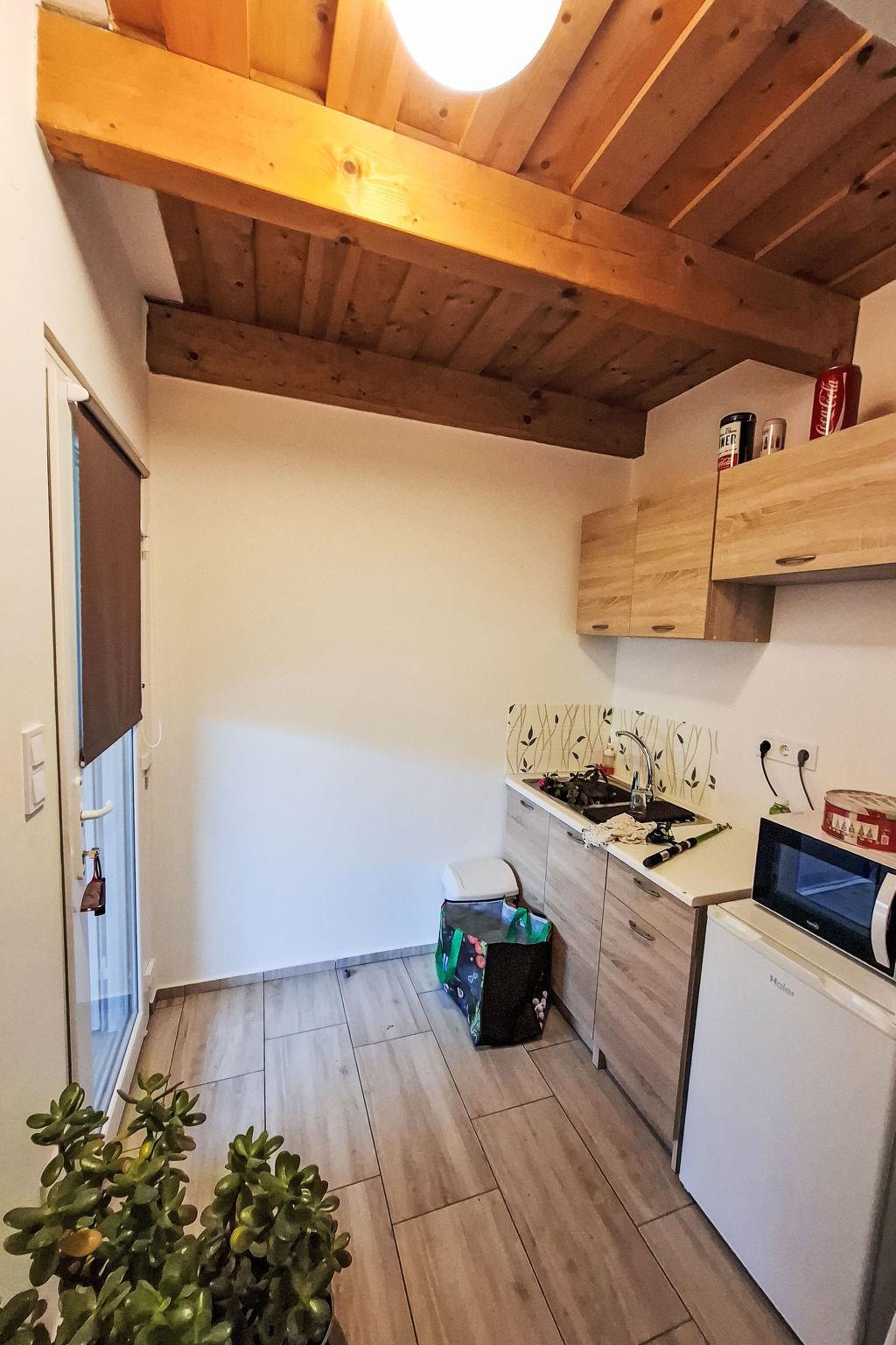 "Lena 1", 2-room apartment. Practical and comfortable furnishings: living/dining room with 1 double sofabed (160 cm, length 200 cm), dining table, kitchen corner, cable TV and air conditioning. Exit to the terrace. 1 double bedroom with 1 french bed (160 cm, length 200 cm). Small kitchenette (2 hot plates, kettle, microwave, electric coffee machine). Shower/WC. Air-conditioning. Heating not available in all rooms. Terrace furniture, deck chairs. Facilities: mosquito net. Internet (WiFi). Please note: private entrance. There is a horse paddock at the rear of the property. MA20010187