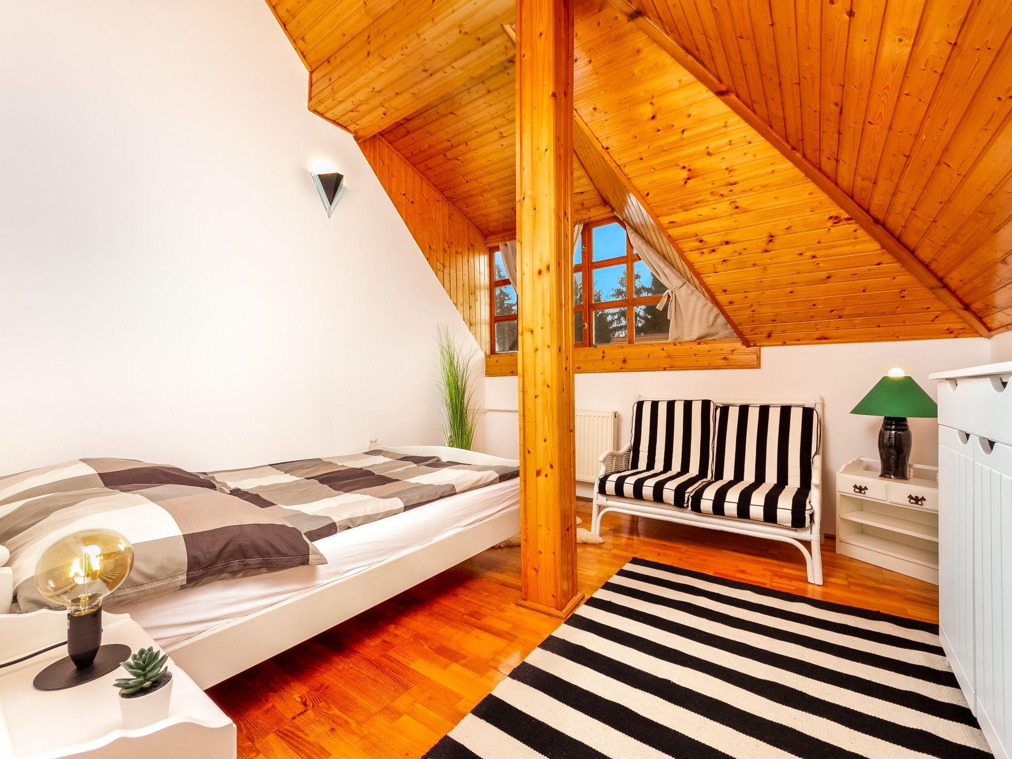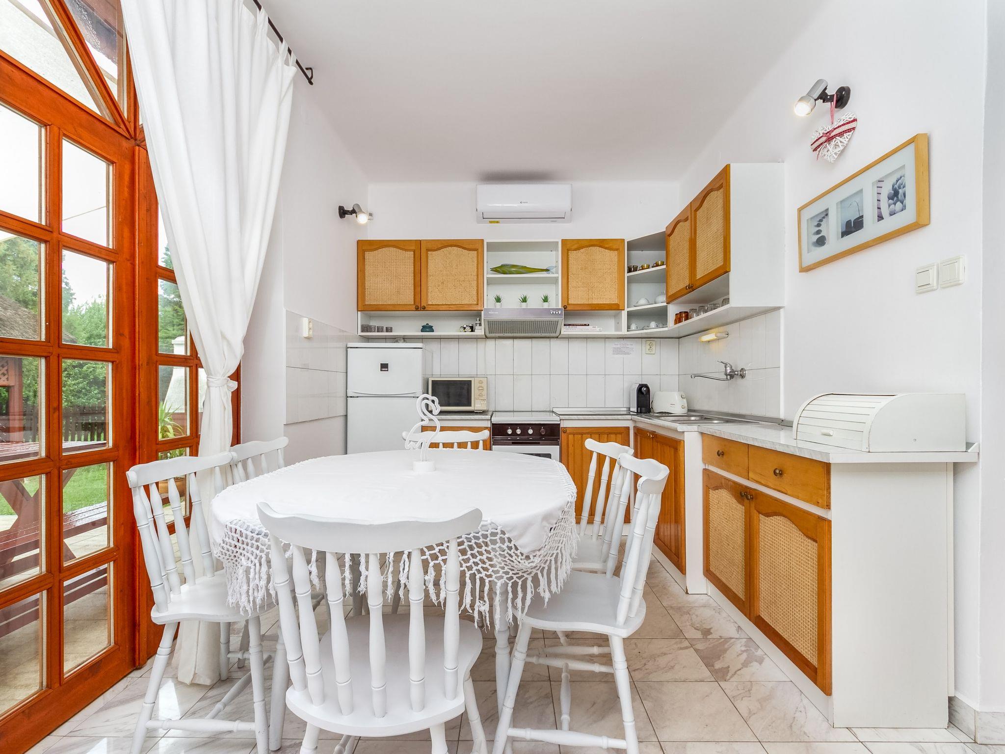 Balatonberény 14 km from Keszthely: Semi-detached house "Ruby 2", 2 storeys. In the resort, in a sunny position, 200 m from the lake. Private: garden (fenced) with lawn, lawn for sunbathing, swimming pool angular (4 x 3 m, seasonal availability: 15.May. - 15.Sep.). Pergola. In the house: WiFi, air conditioning. Available: bicycles (2). Grocery, restaurant, grass beach 200 m. Well-known lakes can easily be reached: Hévíz Thermal 22 km. Please note: fishing [permit required].