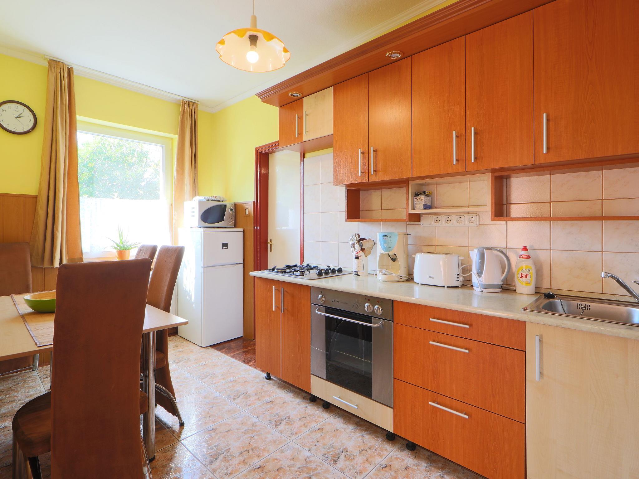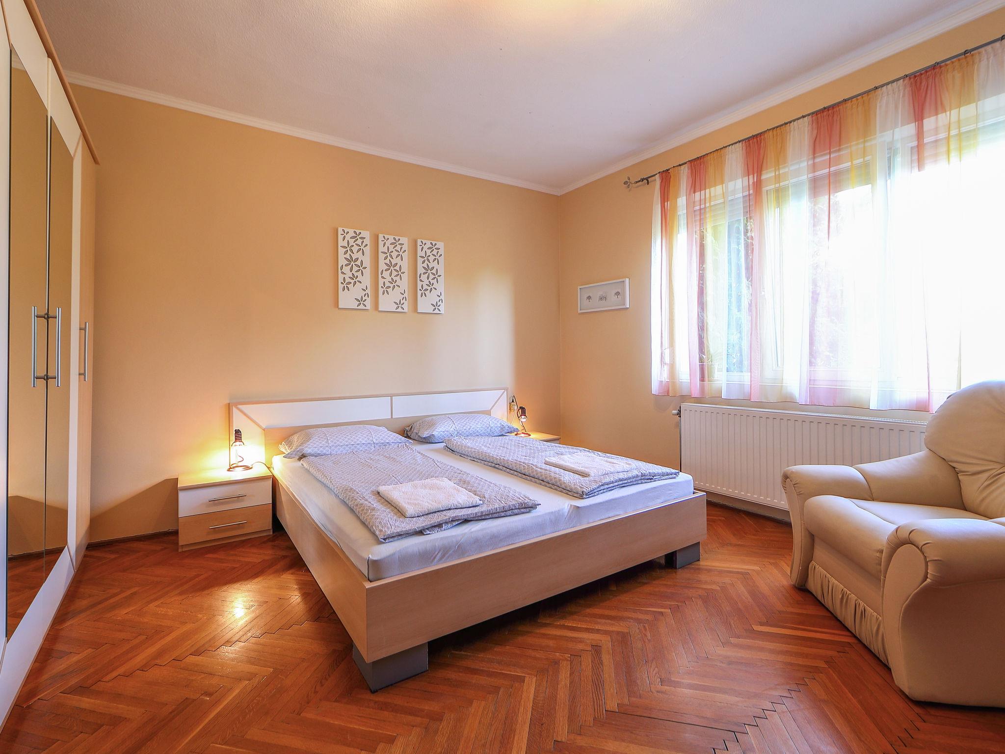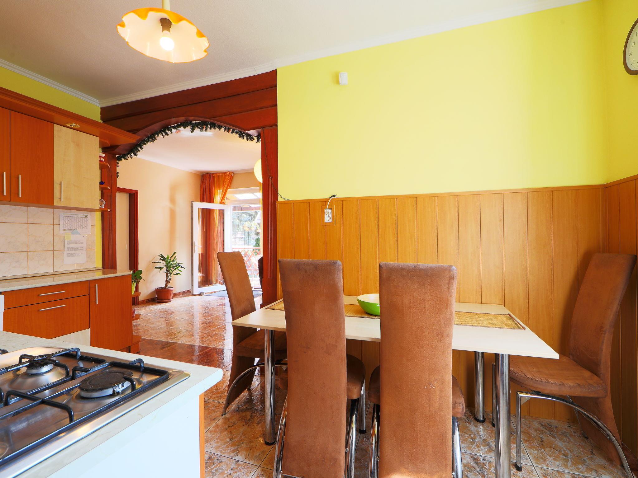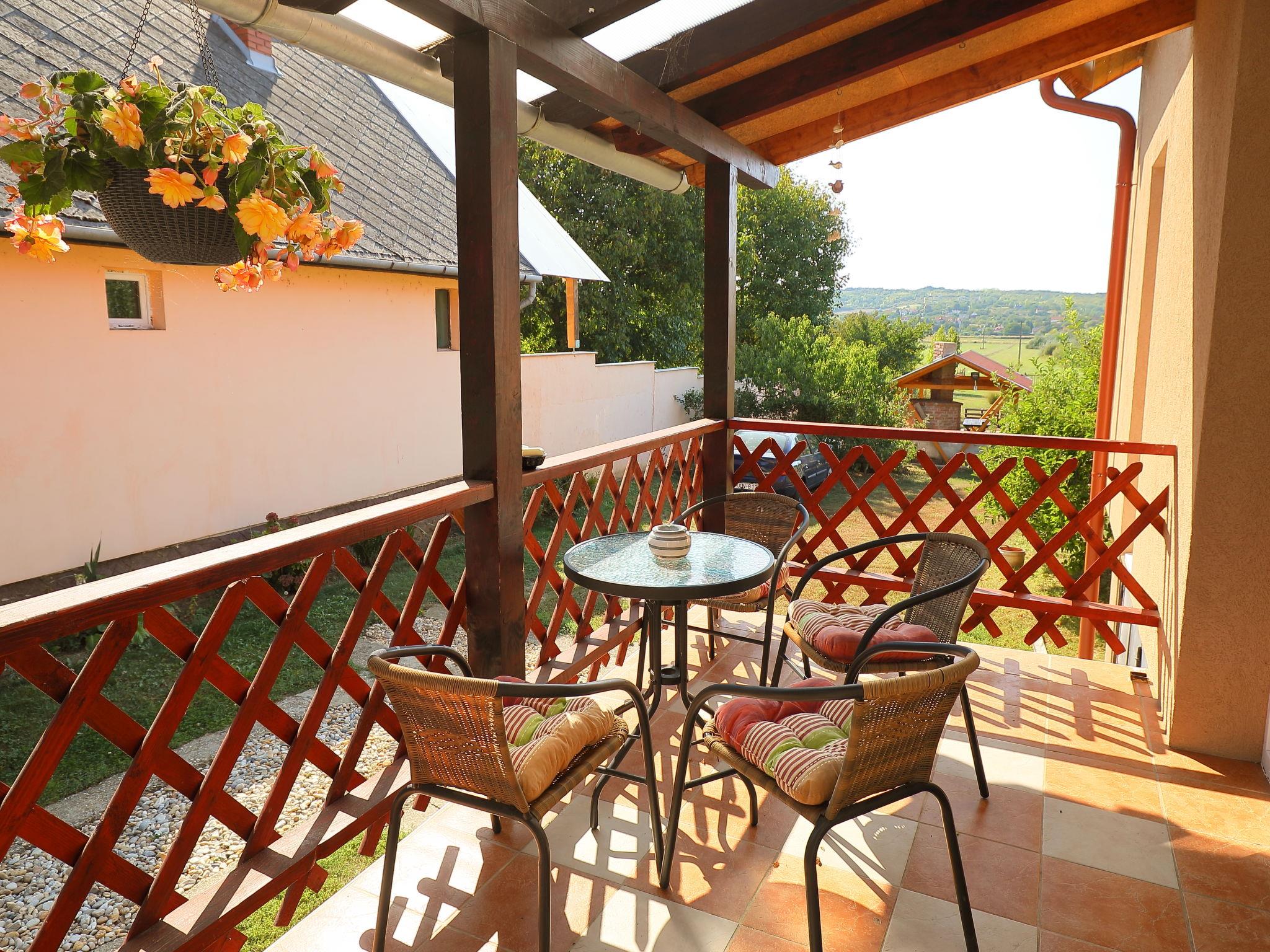 Koröshegy 3 km from Balatonföldvár: Cosy single-family house "Beata", 2 storeys, renovated in 2020. In the resort, 3.5 km from the lake, 3.2 km from the beach. Private: large garden (fenced) with lawn and trees, orchard. Patio, barbecue (sandbox). In the house: WiFi, air conditioning, washing machine. Parking (for 3 cars) at the house. Grocery 1 km, supermarket 2.3 km, shopping centre 2.3 km, restaurant 1 km, café 2.5 km, bus stop "Szántód" 2.3 km, railway station "Szántód-Koröshegy" 2.5 km, ferry "Szántód-Tihany" 4.5 km, grass beach "Balatonföldvár" 3.4 km, thermal baths "Igal Thermal Bath" 36 km. Marina 3.8 km, sailing school 4 km, tennis 4.8 km, cycle lane 2.5 km, children's playground 3.4 km. Nearby attractions: Koröshegy Lavender Farm 2.6 km, Balatonföldvár Look-out Tower 5 km, Shipping History Exibition 5 km, Balaton Sound Festival 6.4 km. Please note: baby equipment on request (included).